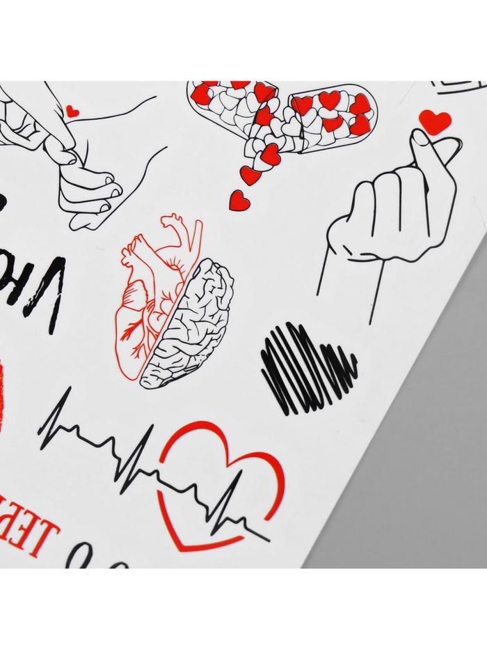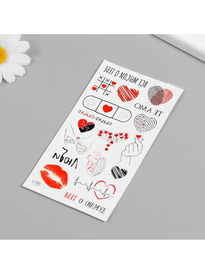 - Универсальное применение: Несомненно, идеально подойдут для таких праздников, как 14 февраля, или станут символом любви в повседневной жизни. Их можно наклеивать на любую часть тела.