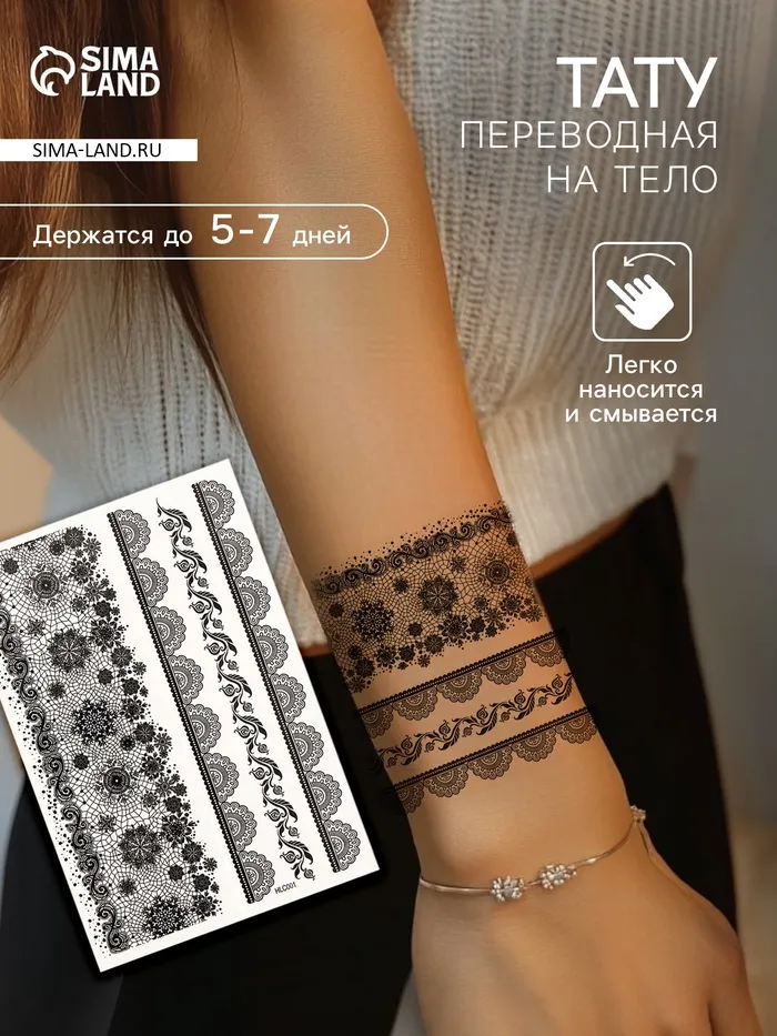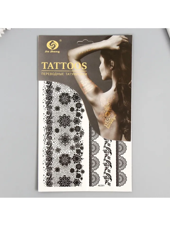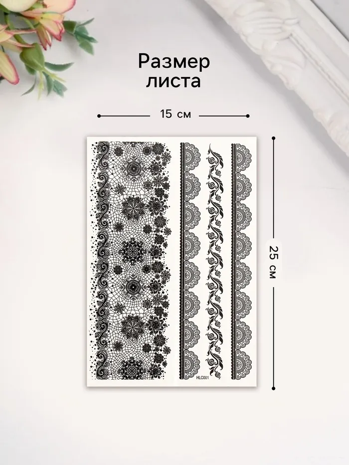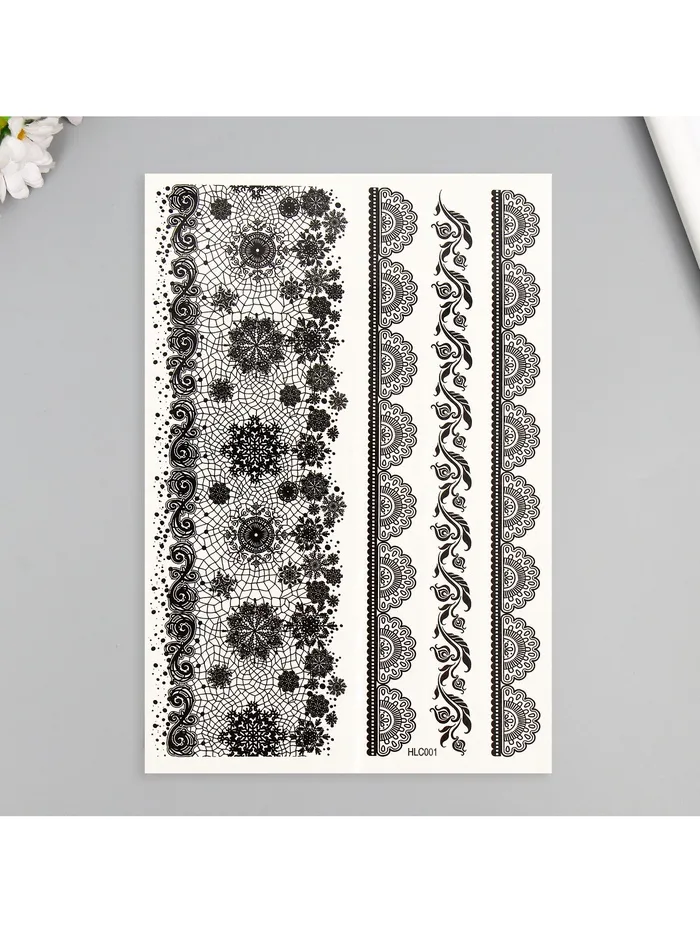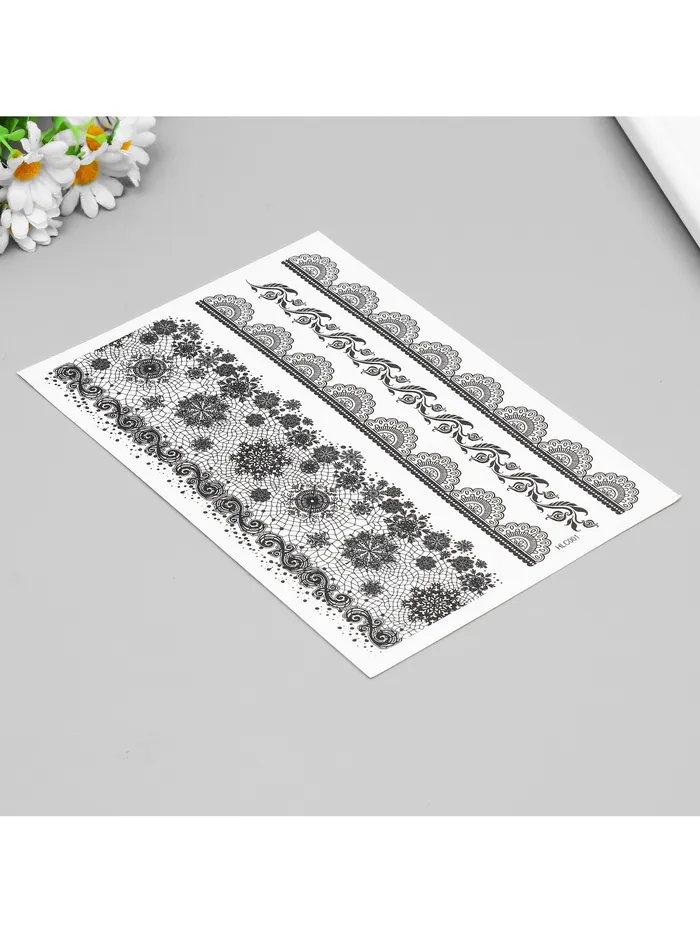Переводные тату на тело чёрные «Ажурные узоры», 25×15 см — Характеристики