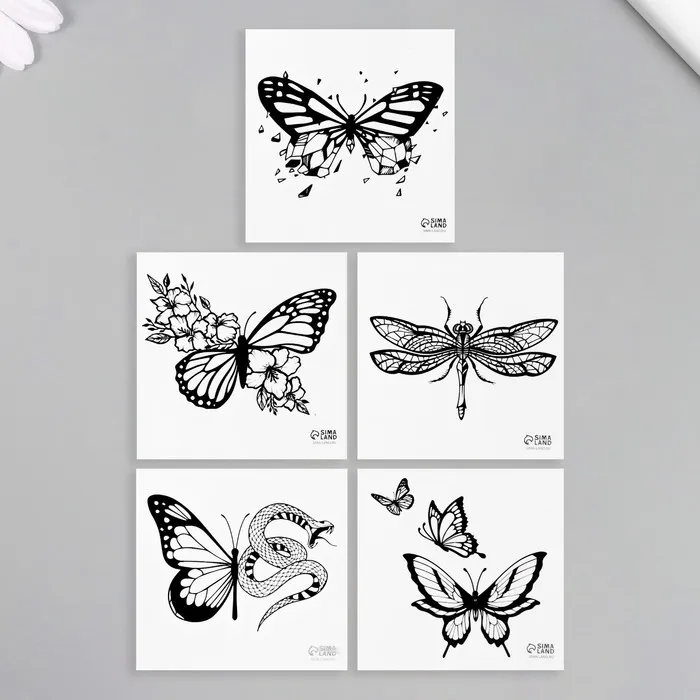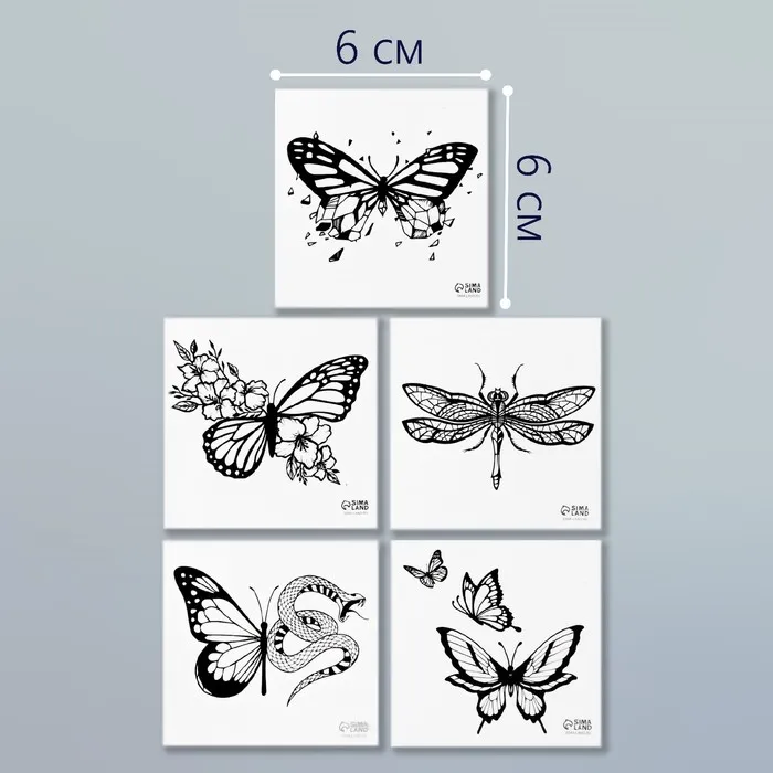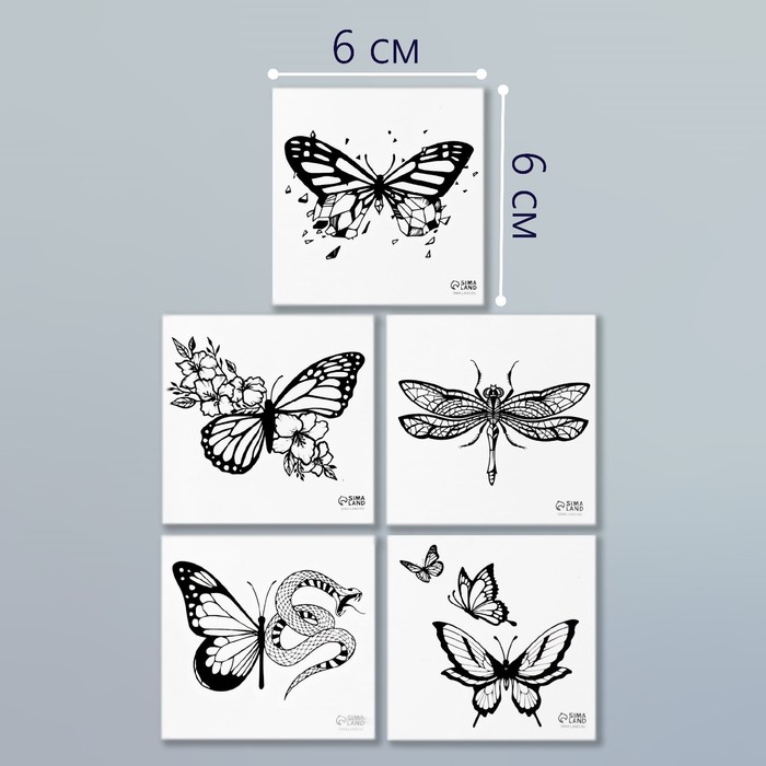 Переводные тату на тело чёрные «Бабочки», набор 5 шт., 6×6 см — Характеристики