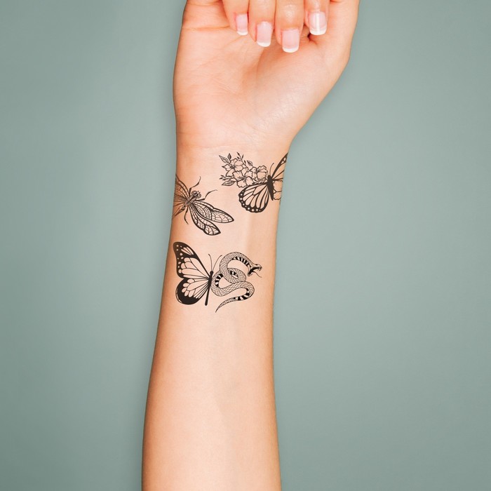 - Эффектная тематика: Наши тату сочетают в себе мотивы бабочек, змеиного принта и цветочные узоры. Каждый элемент подчеркнет вашу индивидуальность и создаст атмосферу таинственности.