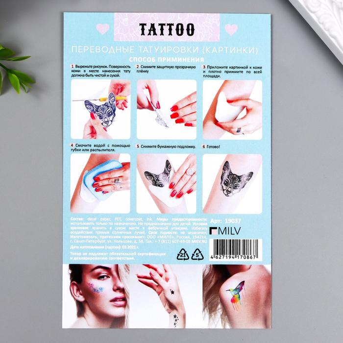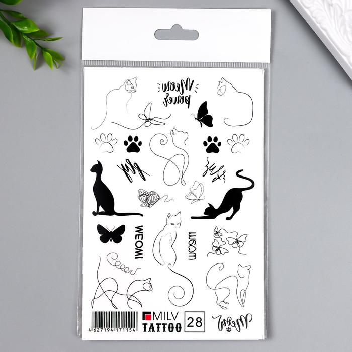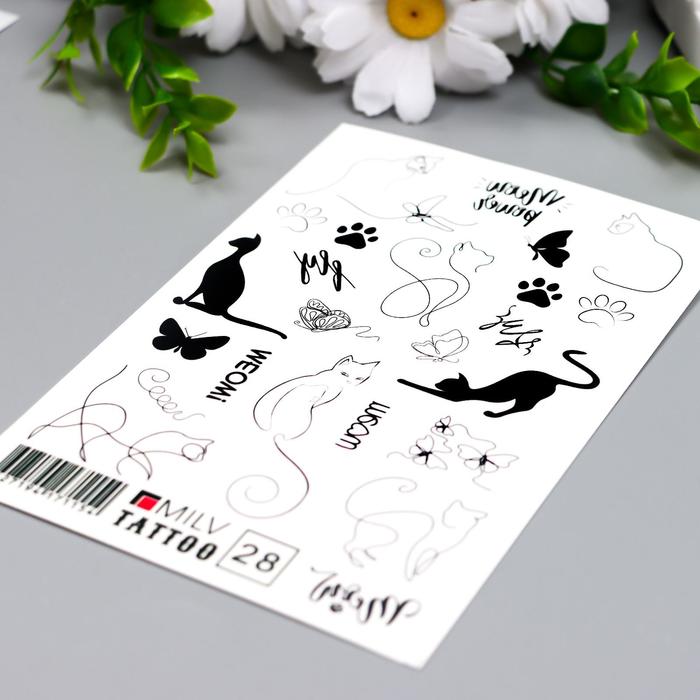 Переводные тату на тело чёрные «Котики», 10×15 см — Характеристики