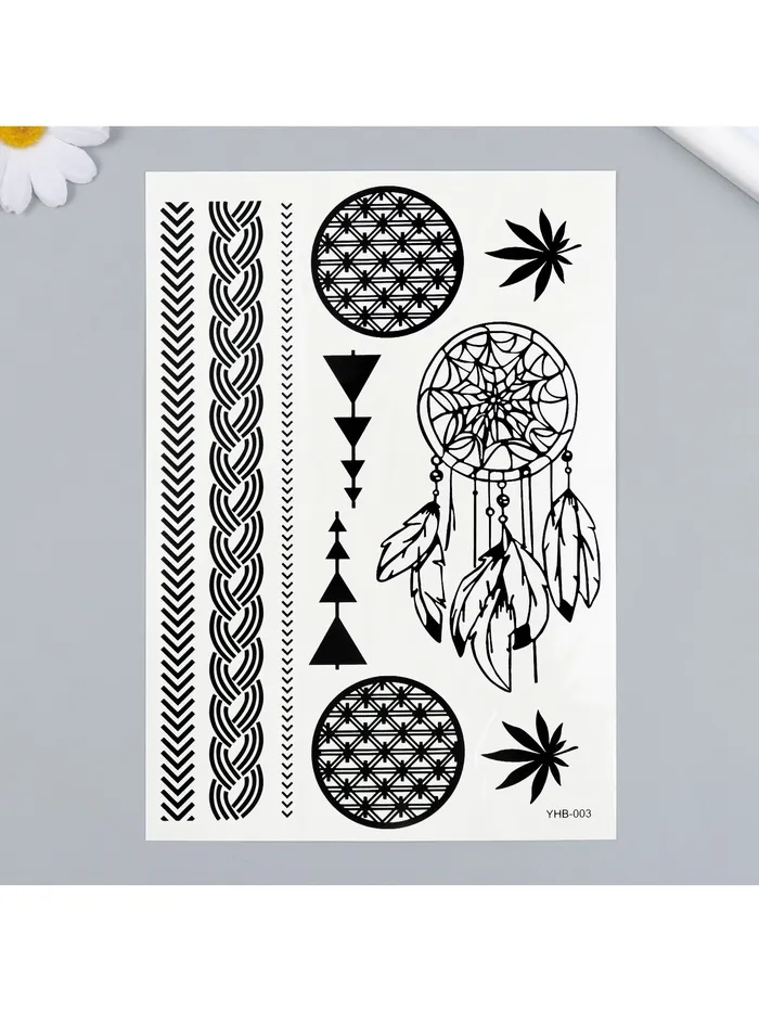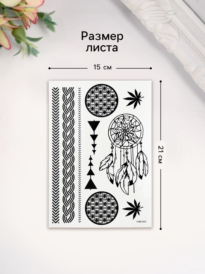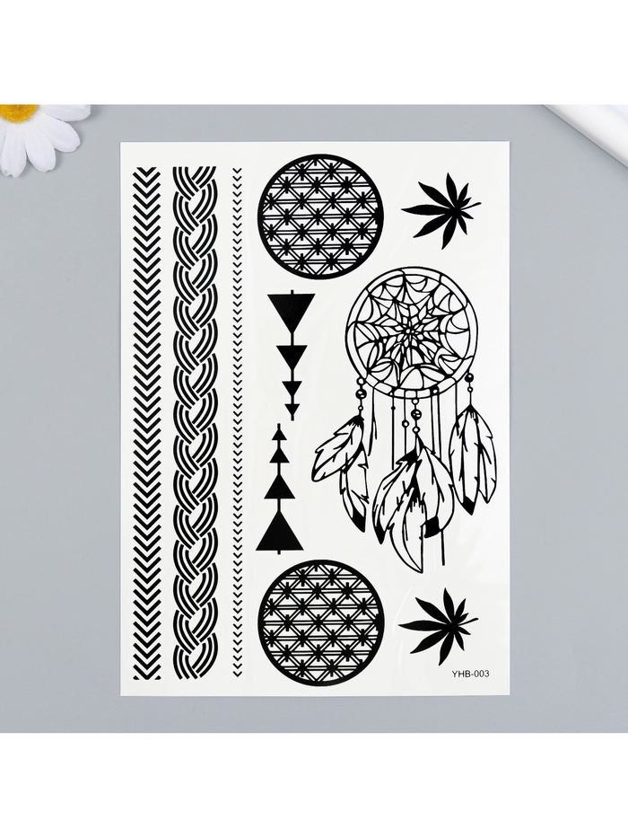 Переводные тату на тело чёрные «Ловец снов», 21×14.8 см — Характеристики