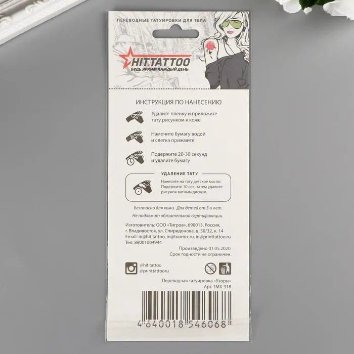 Универсальный дизайн подходит для любой части тела, а качественная основа обеспечивает чёткость линий и комфортное нанесение. Не просто временный рисунок, а возможность экспериментировать с образами легко и без обязательств.
