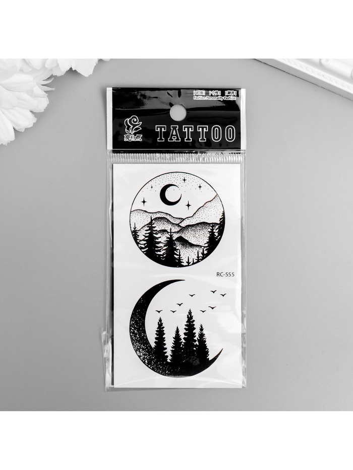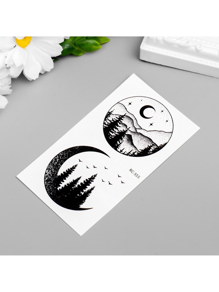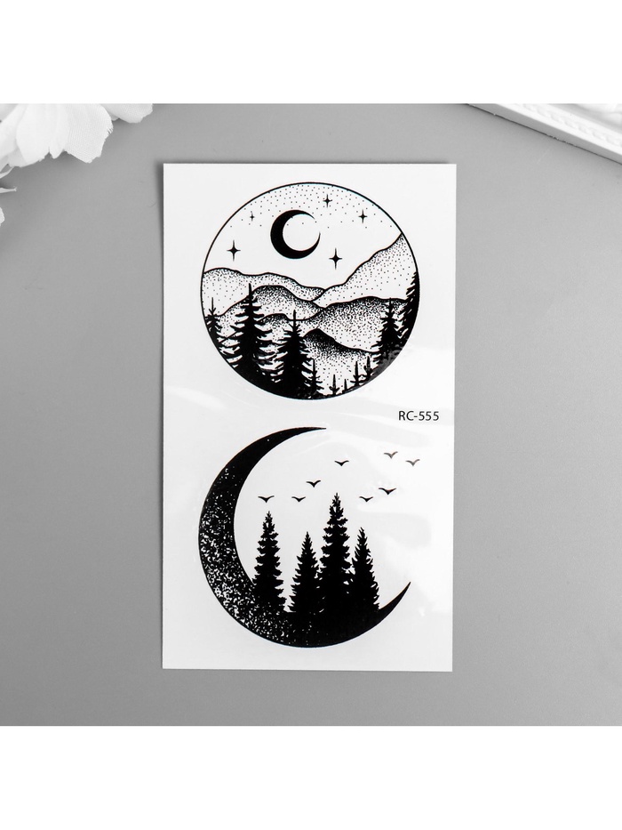 Переводные тату на тело чёрные «Ночь и лес», 10.5×6 см — Характеристики