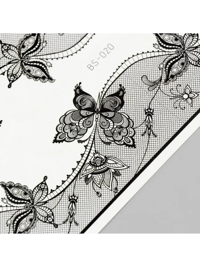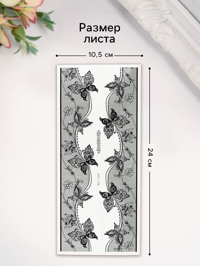 Переводные тату на тело чёрные «Сетка с ажурными бабочками», 24×10.5 см — Характеристики