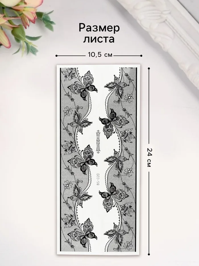 - Изысканный дизайн: Ажурная сетка переплетается с грациозными бабочками, добавляя загадочности и утонченности. Такой узор станет истинным украшением запястья, подчеркивая красоту и индивидуальность.