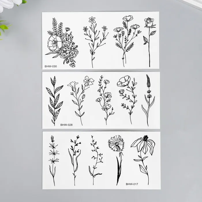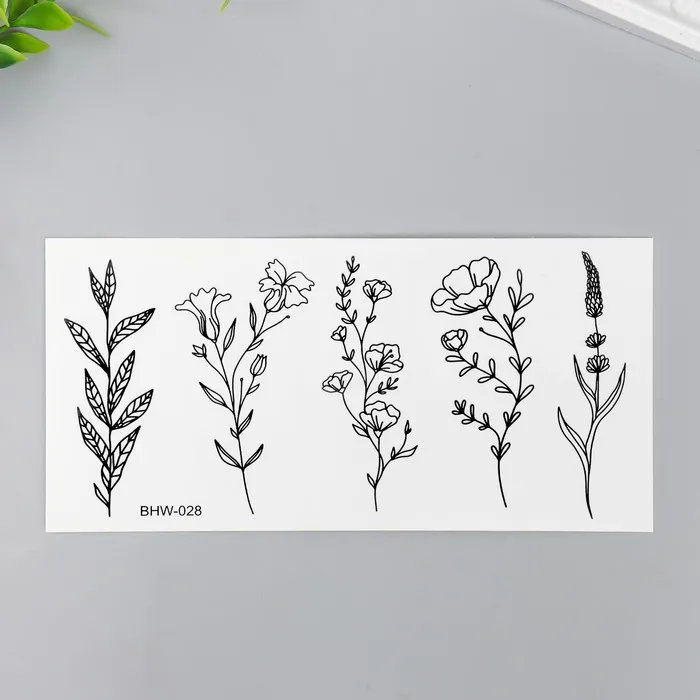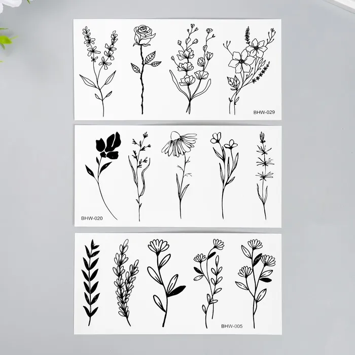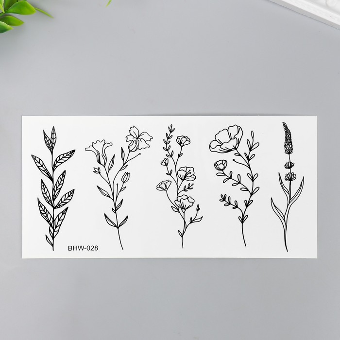 Переводные тату на тело чёрные «Цветочная», 14×7 см, МИКС — Характеристики