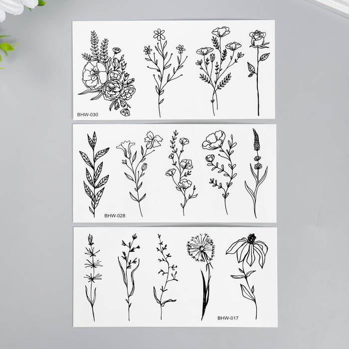 Переводные тату на тело чёрные «Цветочная», 14×7 см, МИКС — Характеристики