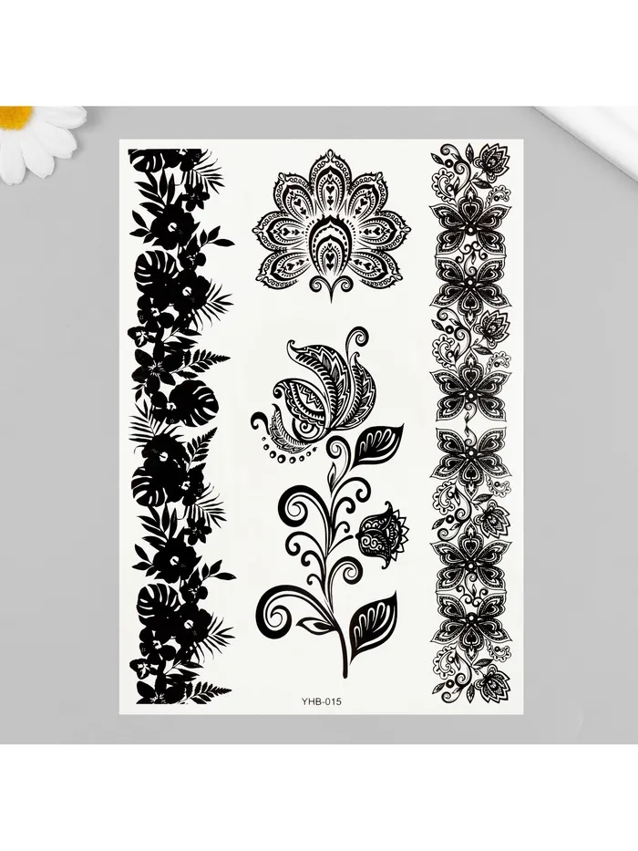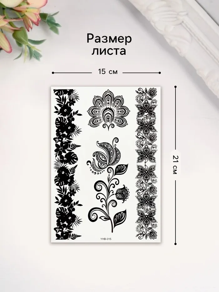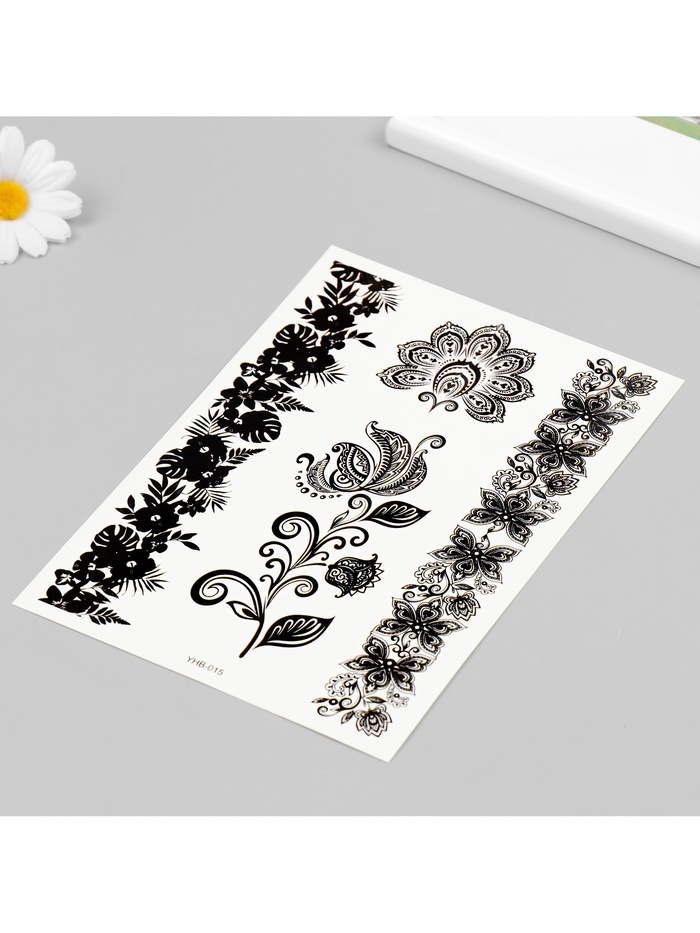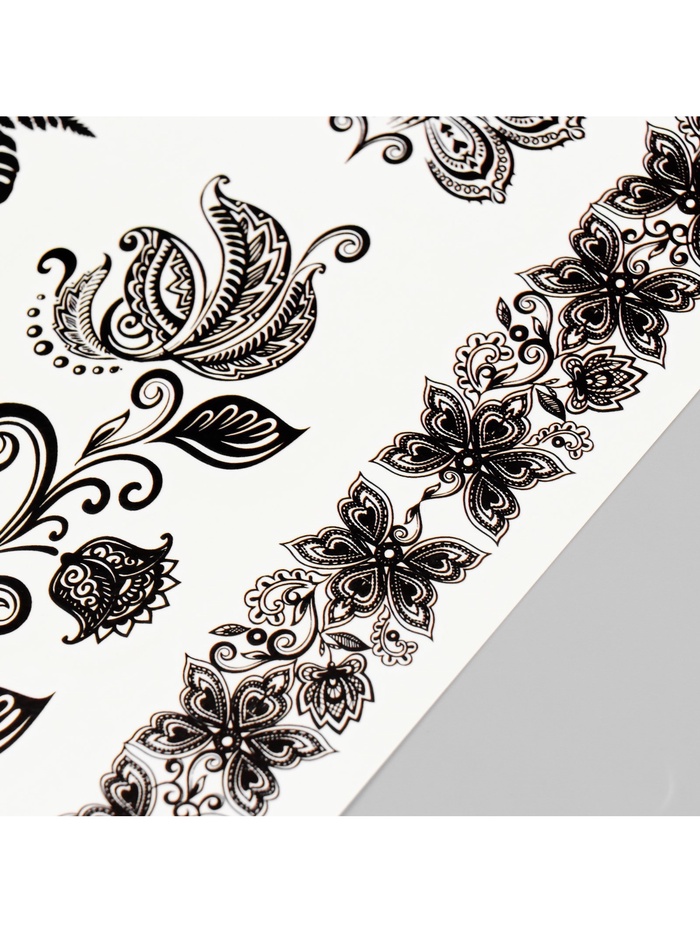 Переводные тату на тело чёрные «Цветочные орнаменты», 21×14.8 см — Характеристики