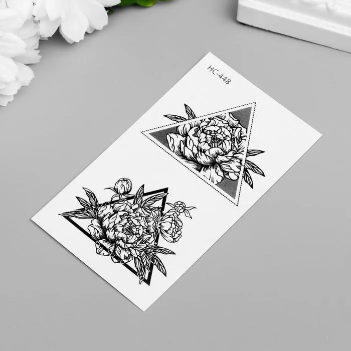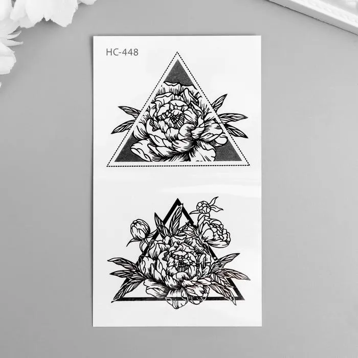 Переводные тату на тело чёрные «Цветы в треугольниках», 10.5×6 см — Характеристики