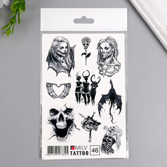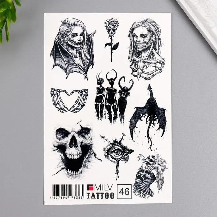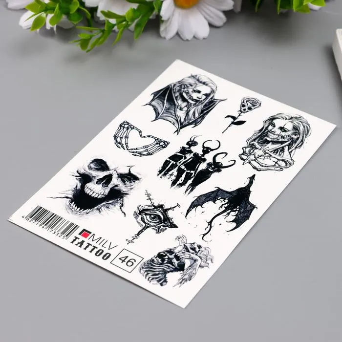 Добавьте в свой образ загадочности и интриги с временным татуировками, которые превращают любое событие в нечто особенное. Этот набор черных переводных рисунков с тематикой «Ужасы» станет вашим надежным союзником для создания запоминающегося образа. Размер 10×15 см позволяет экспериментировать с размещением на теле, делая его универсальным решением для любого костюма или стиля.