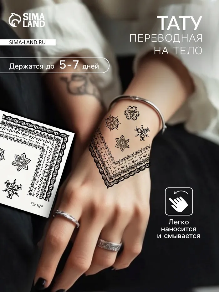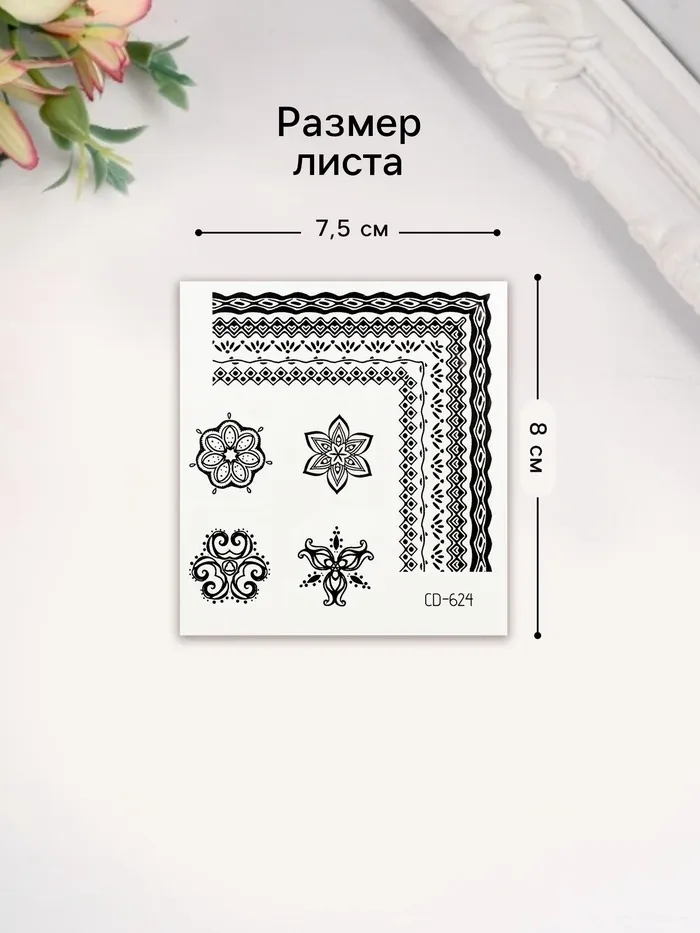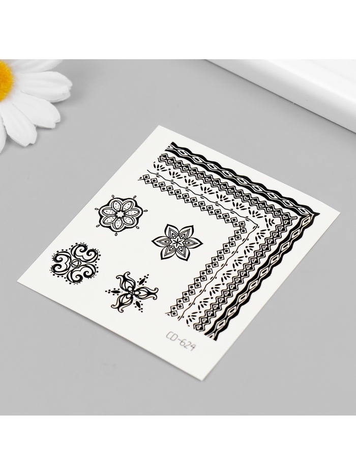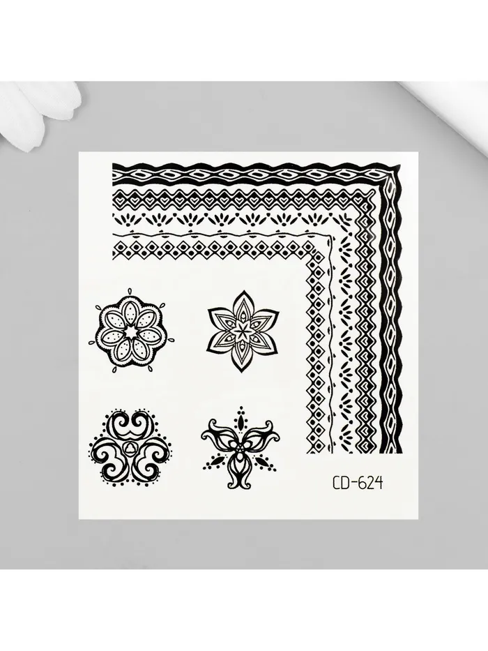 Переводные тату на тело чёрные «Узорный уголок», 8×7.5 см — Характеристики