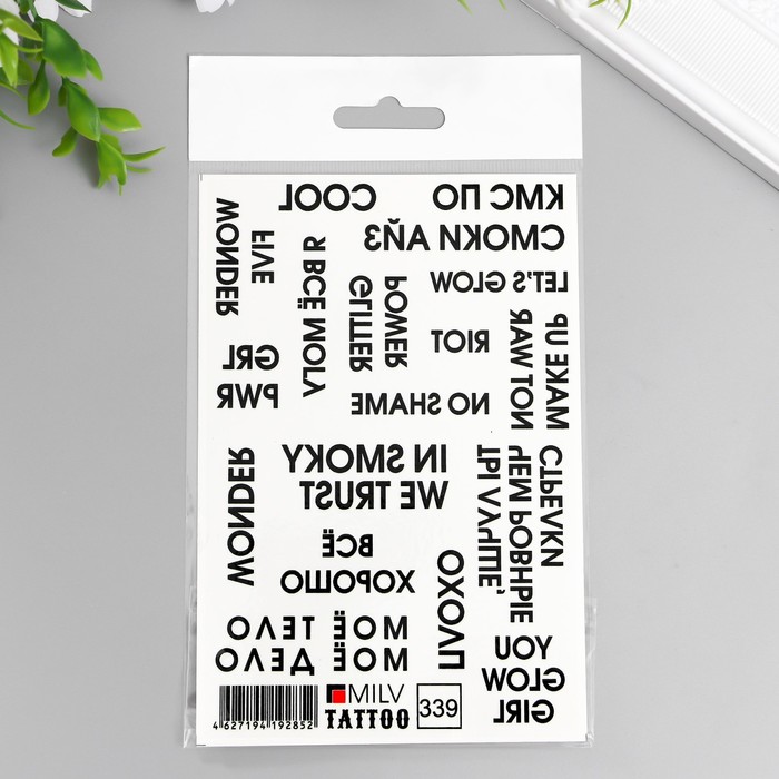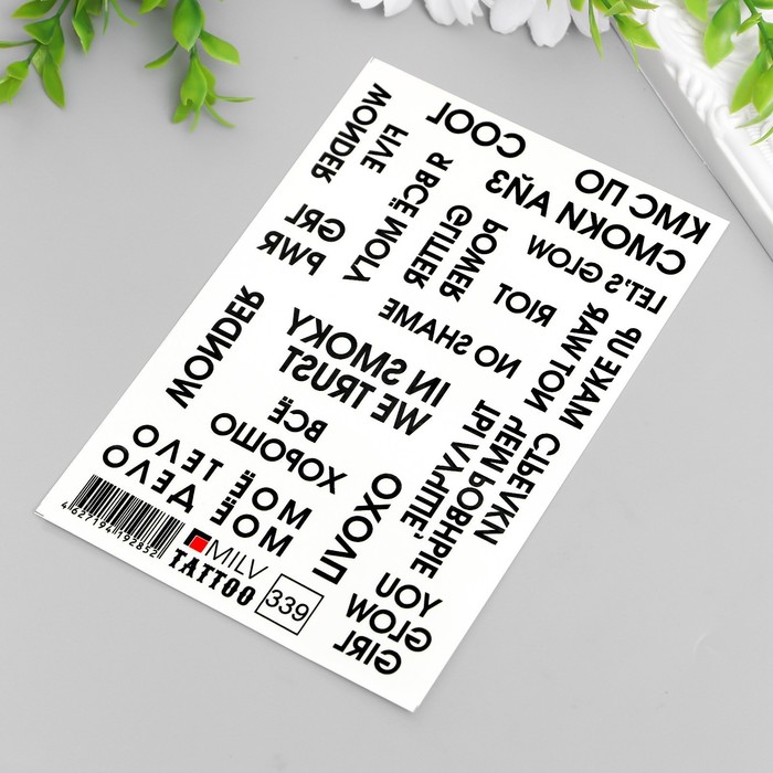 Эти стильные переводные надписи превратят ваше тело в холст для самовыражения. Чёткие шрифтовые композиции и цифры в чёрном цвете создают эффект профессиональной татуировки, позволяя каждый день носить новую философию на коже.