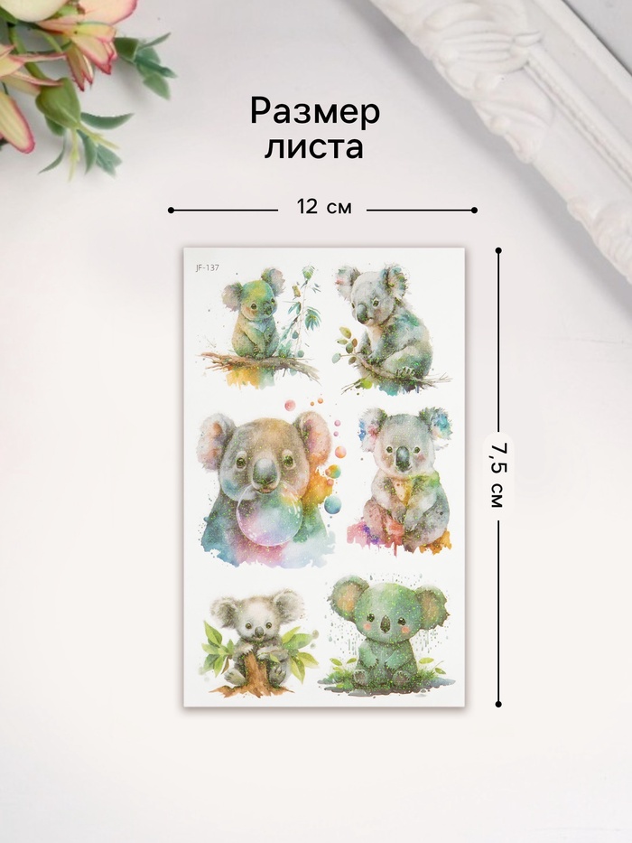 Переводные тату на тело светящиеся с блёстками «Коала», 7.5×12 см — Характеристики