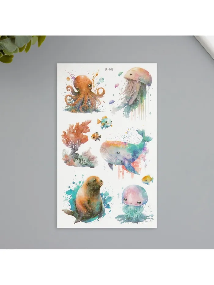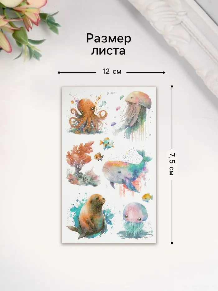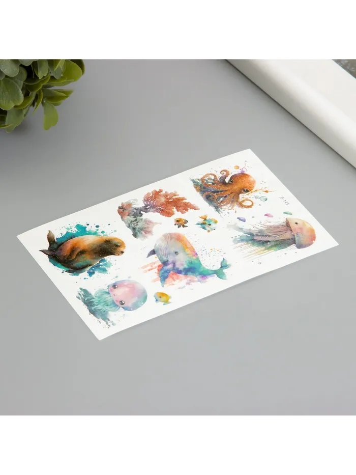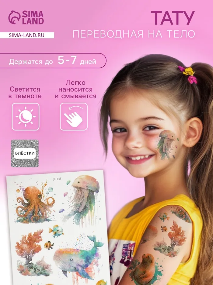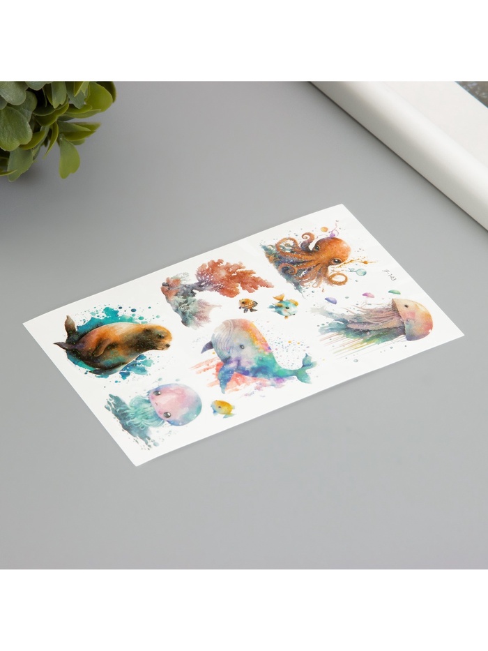 Переводные тату на тело светящиеся с блёстками «Крупные морские жители», 7.5×12 см — Характеристики
