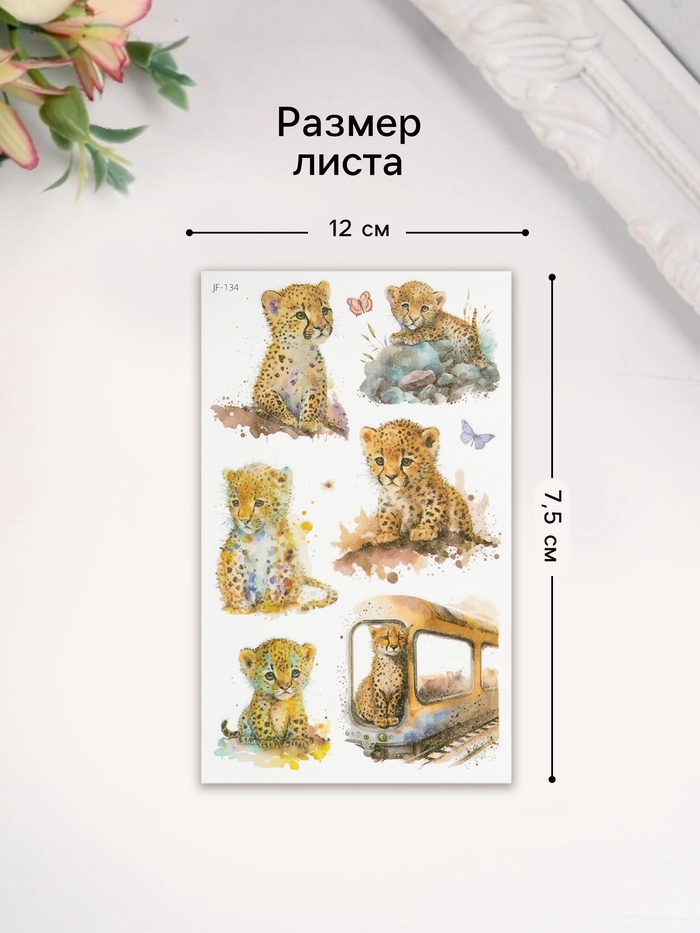 Переводные тату на тело светящиеся с блёстками «Леопард», 7.5×12 см — Характеристики