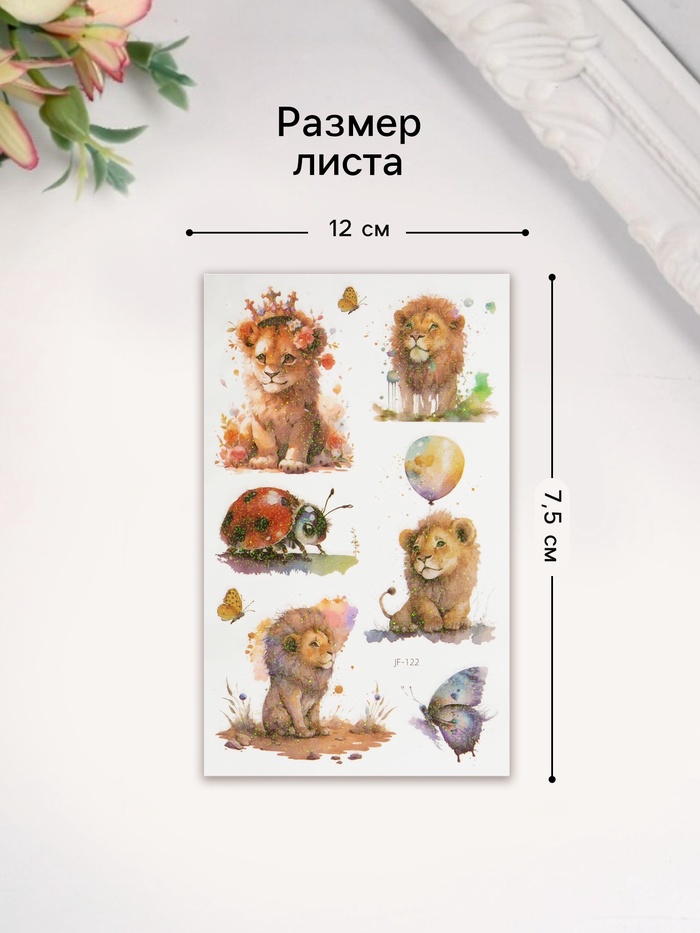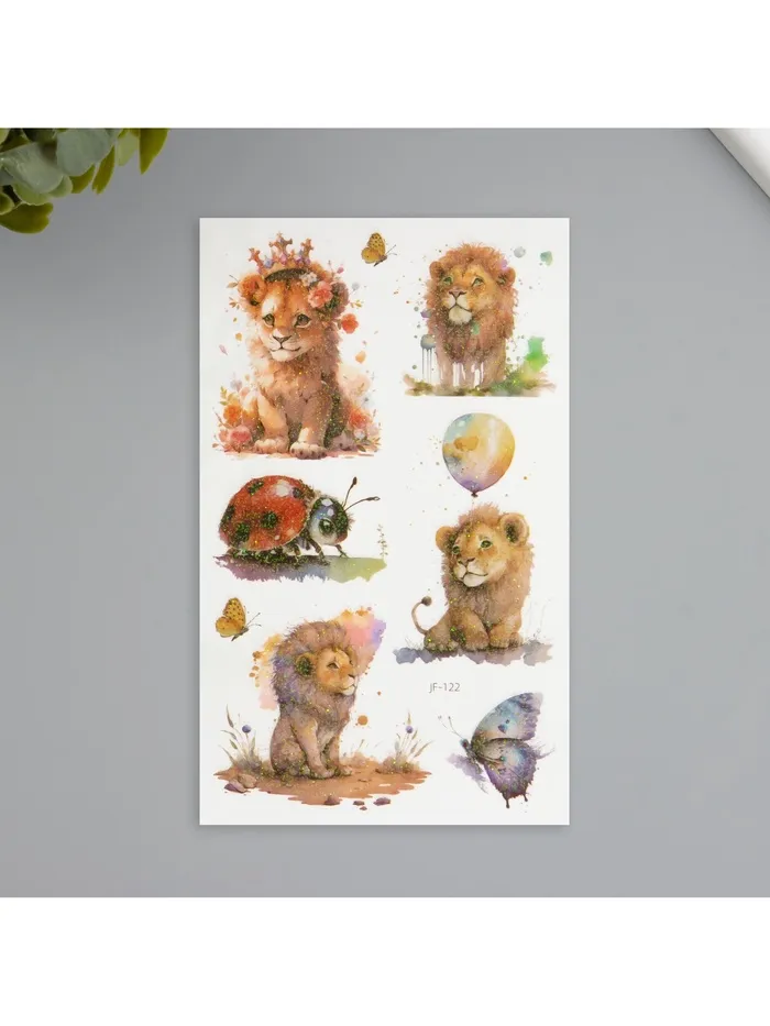Переводные тату на тело светящиеся с блёстками «Львёнок», 7.5×12 см — Характеристики