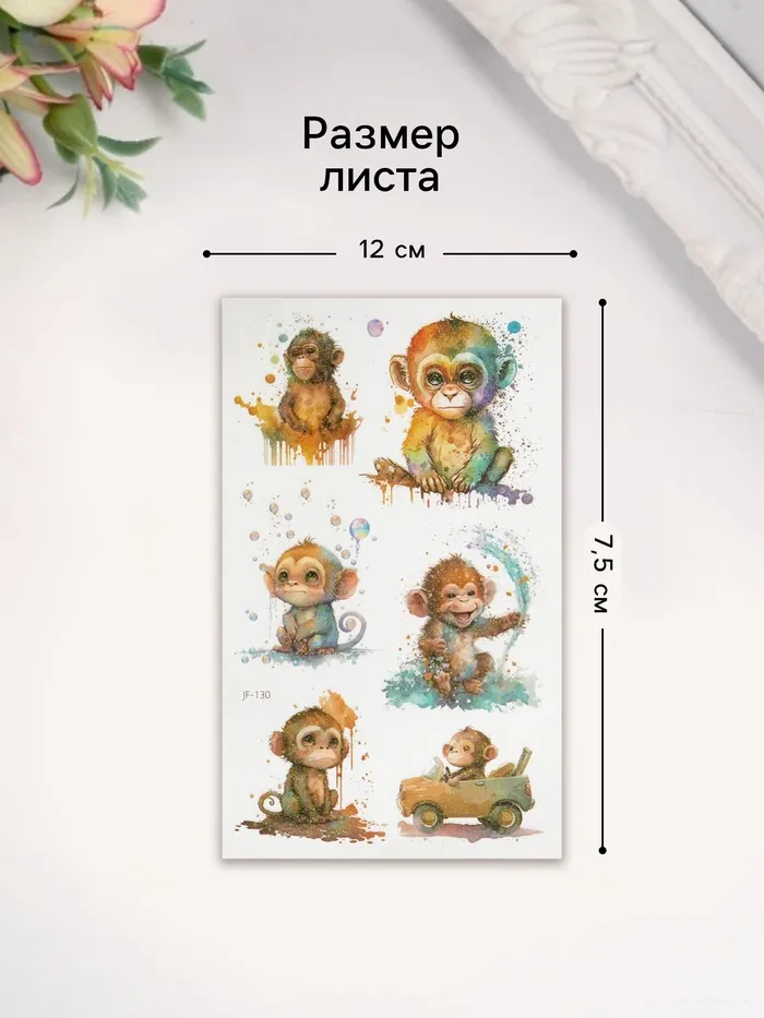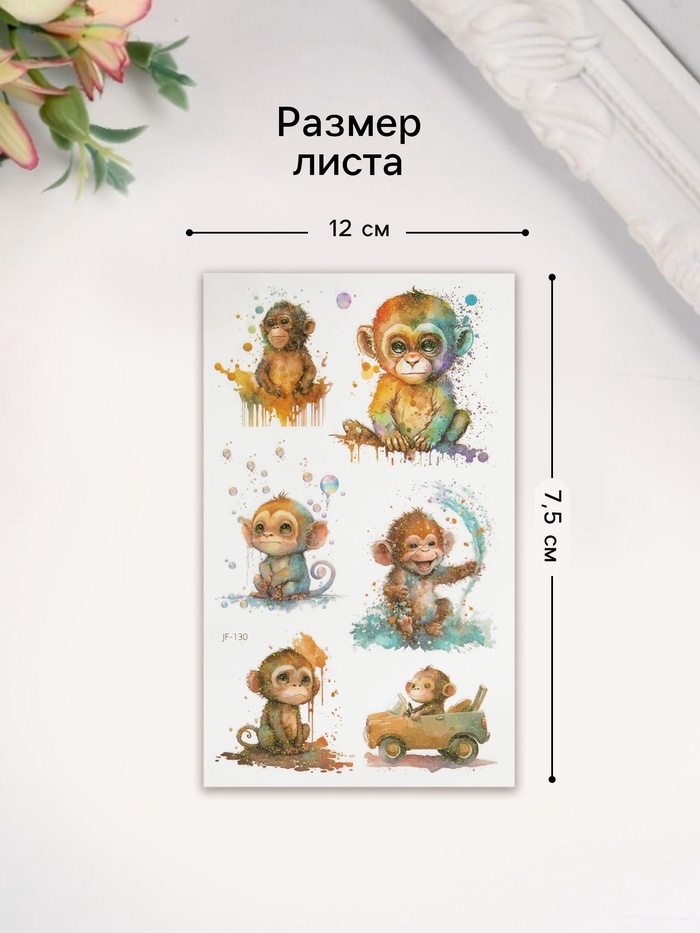 Переводные тату на тело светящиеся с блёстками «Обезьянка», 7.5×12 см — Характеристики