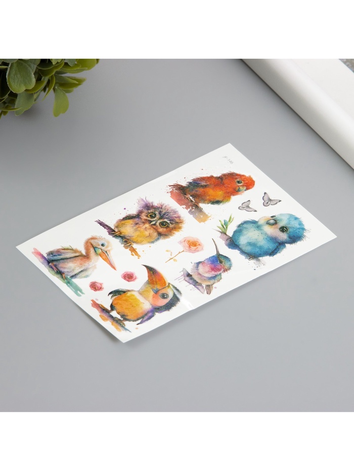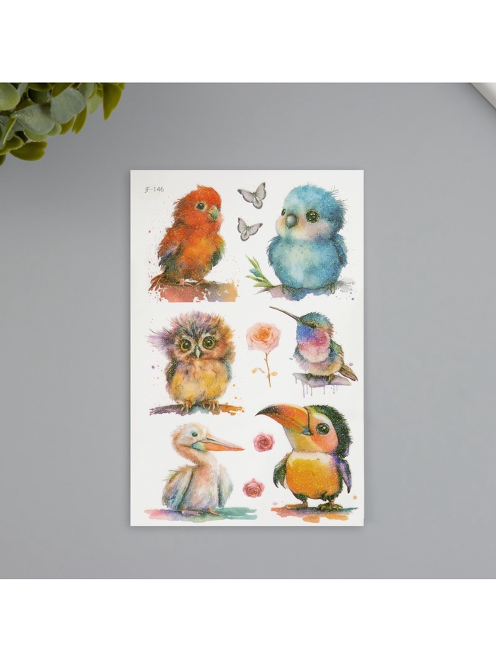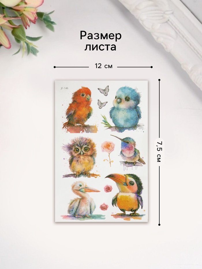 Переводные тату на тело светящиеся с блёстками «Птички», 7.5×12 см — Характеристики