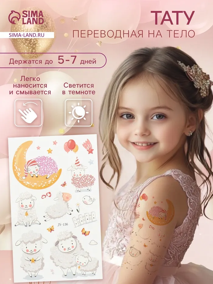 Переводные тату на тело светящиеся «Сонный барашек», 12×7.5 см — Характеристики