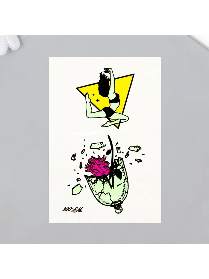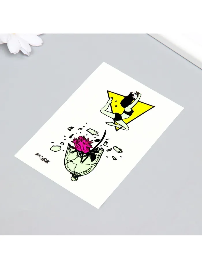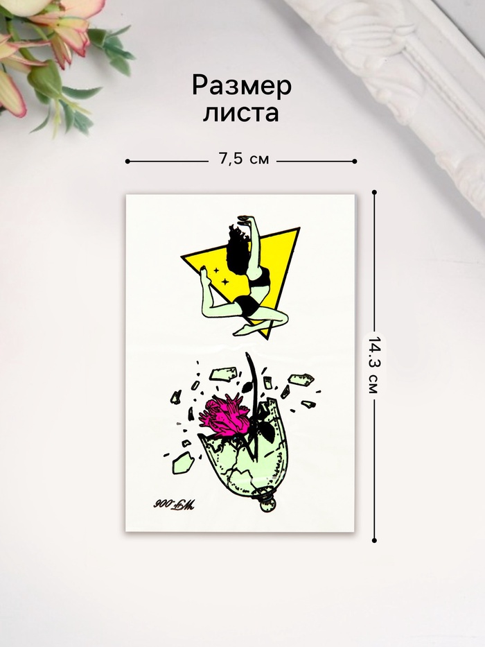 Переводные тату на тело светящиеся цветные «Девушка и роза в осколках», 14.3×7.5 см — Характеристики