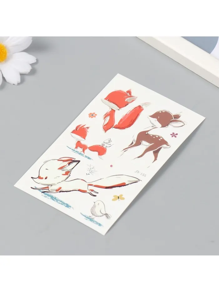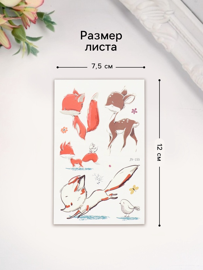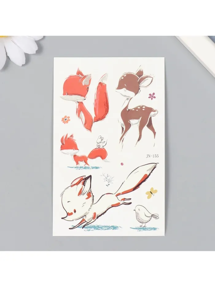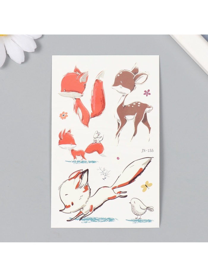 Переводные тату на тело светящиеся цветные «Оленёнок и лисята», 7.5×12 см — Характеристики