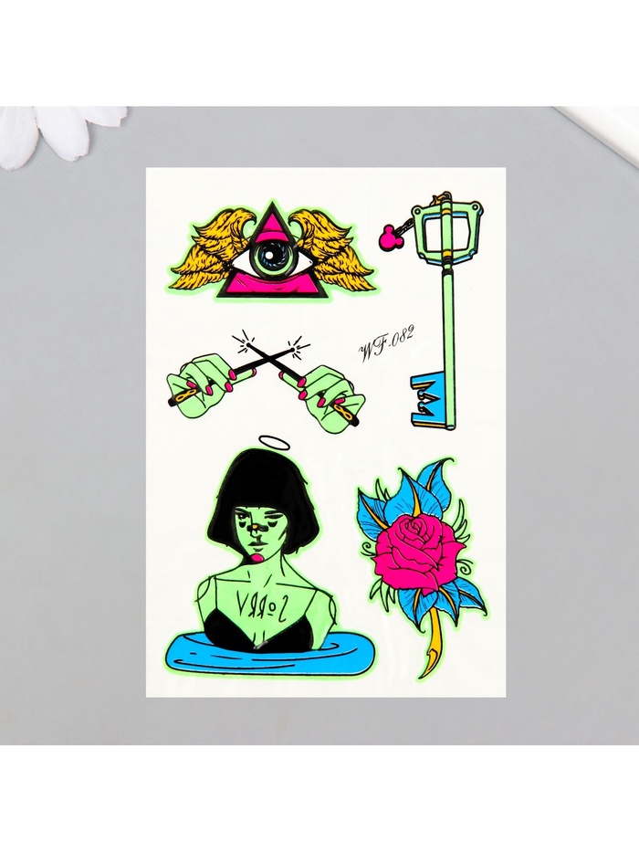 Переводные тату на тело светящиеся цветные «Тайны и конспирология», 14.3×7.5 см — Характеристики