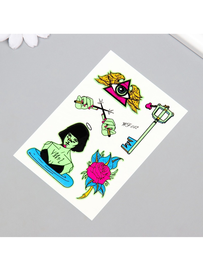 - Невероятный эффект: Татуировки светятся в темноте, подчеркивая вашу загадочность и оригинальность. Их можно легко наносить и снимать, подстраивая внешний вид под настроение.
