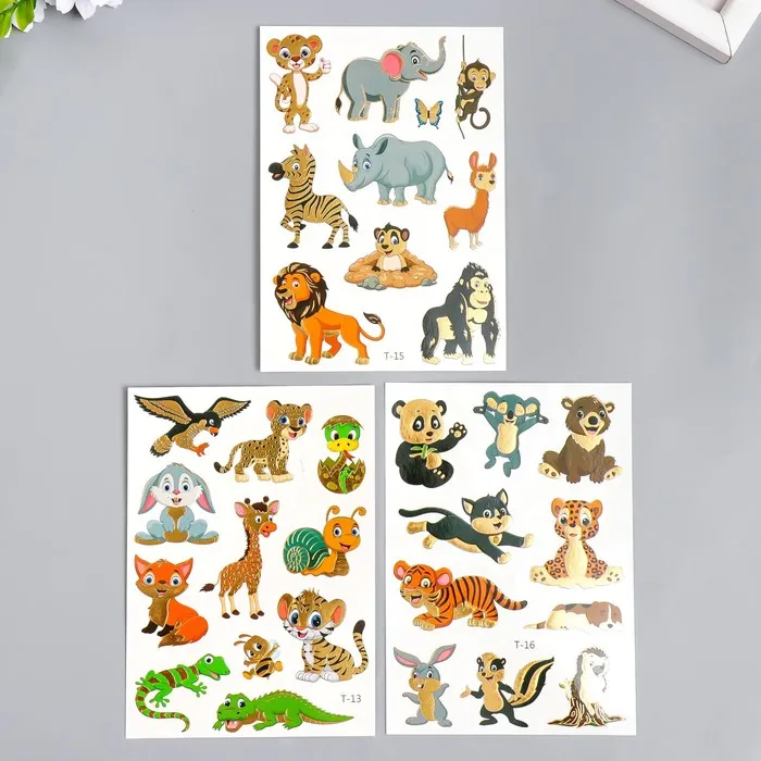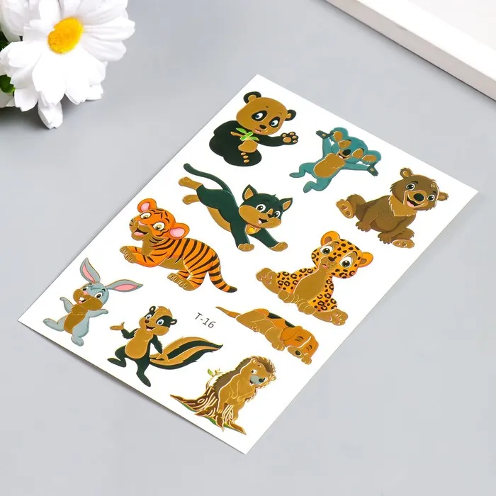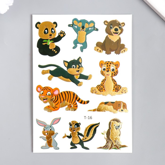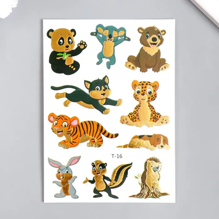 Переводные тату на тело цветная с золотом «Звери», 15×10.5 см, МИКС — Характеристики