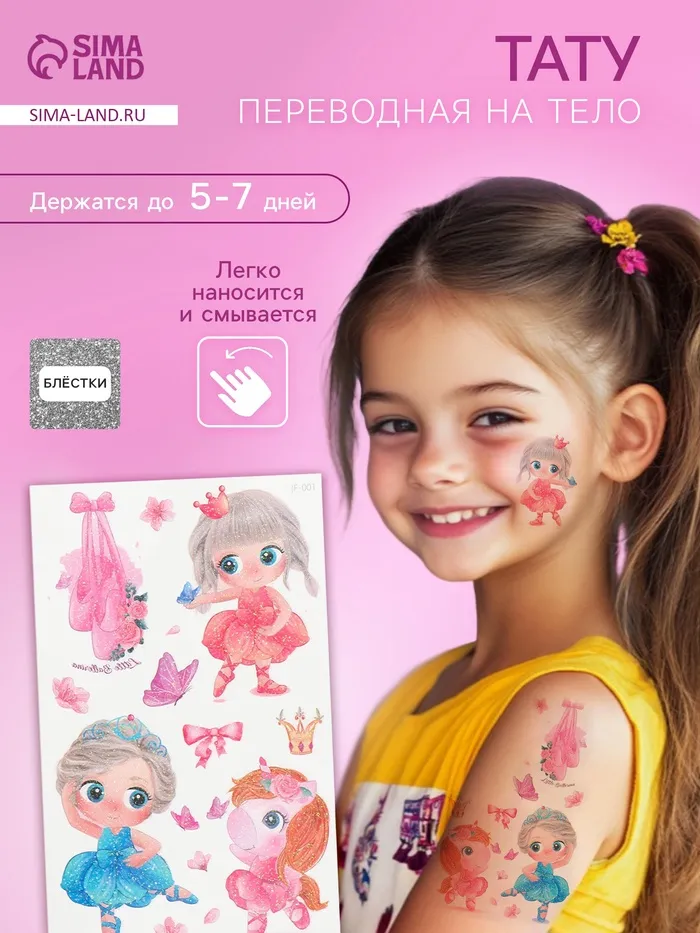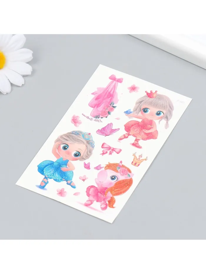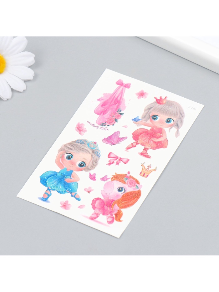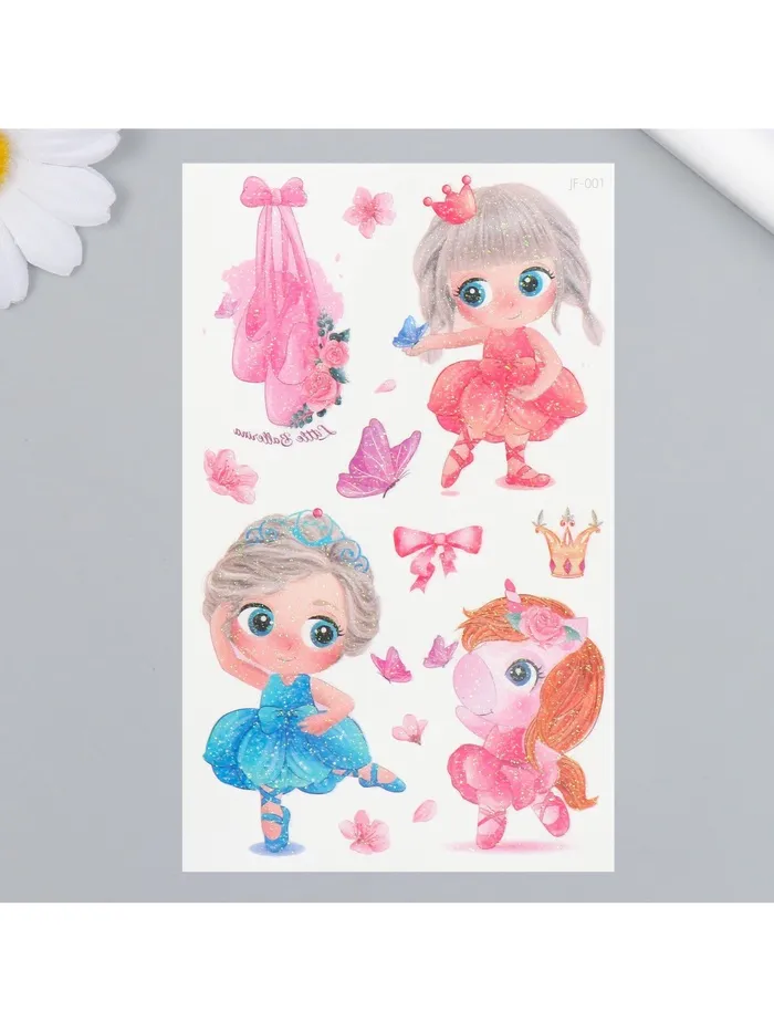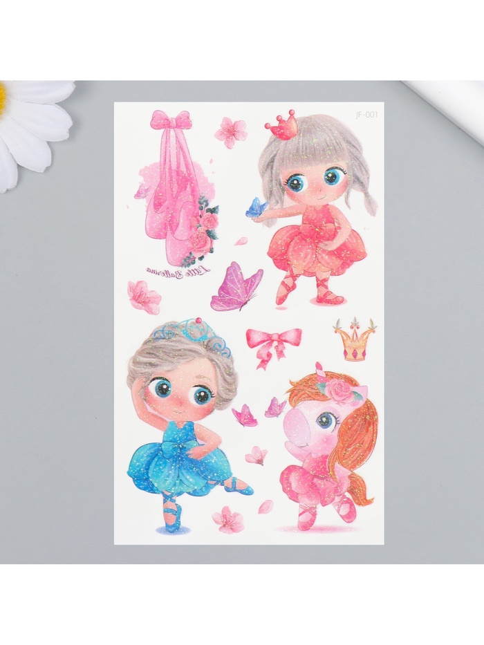 Переводные тату на тело цветные «Балерина и единорог», блёстки, 12×7.5 см — Характеристики