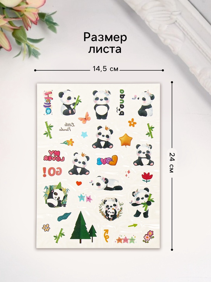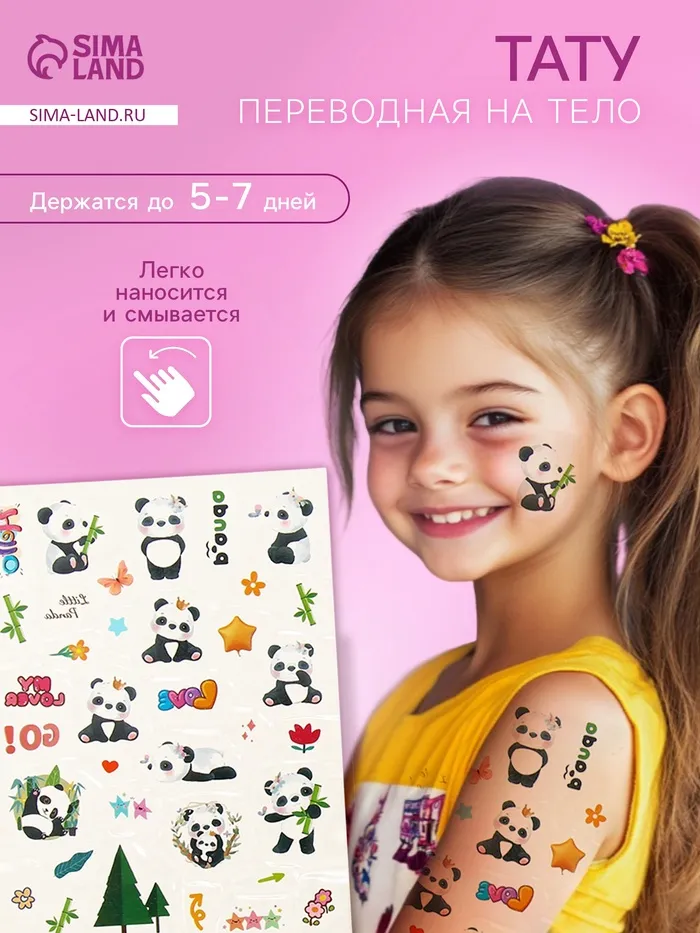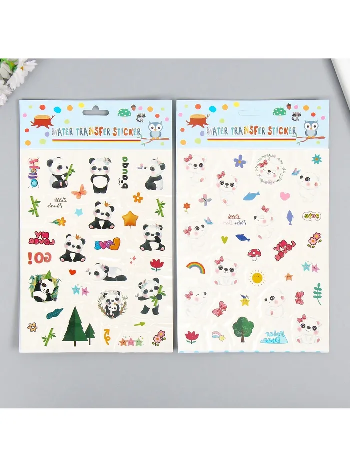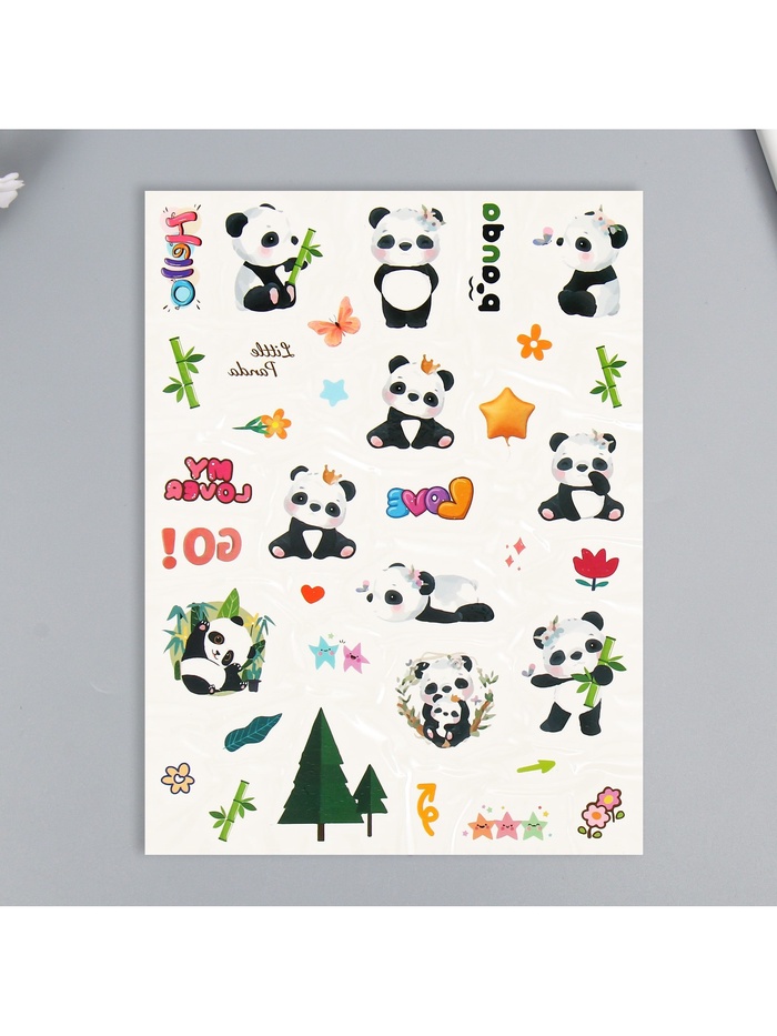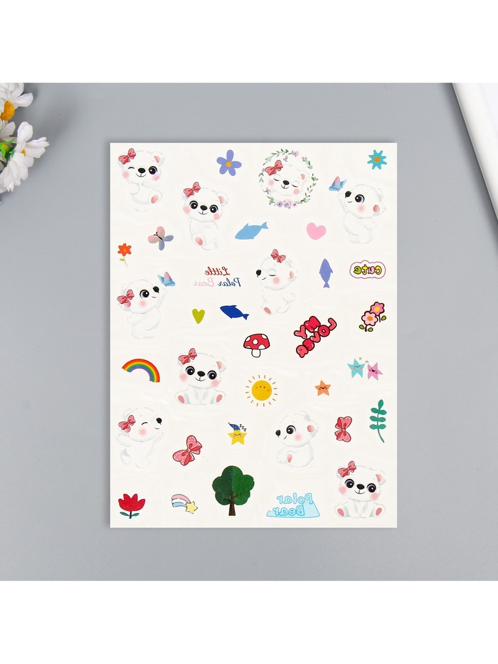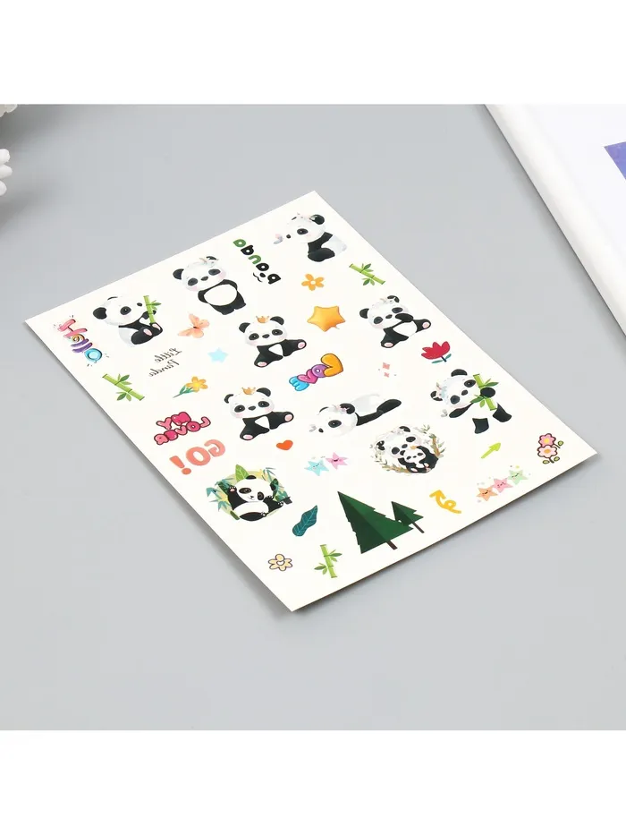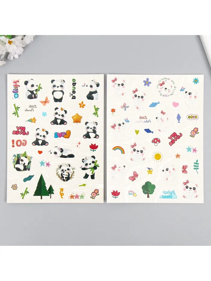 Переводные тату на тело цветные «Белые мишки. Панды», 24×14.5 см, МИКС — Характеристики