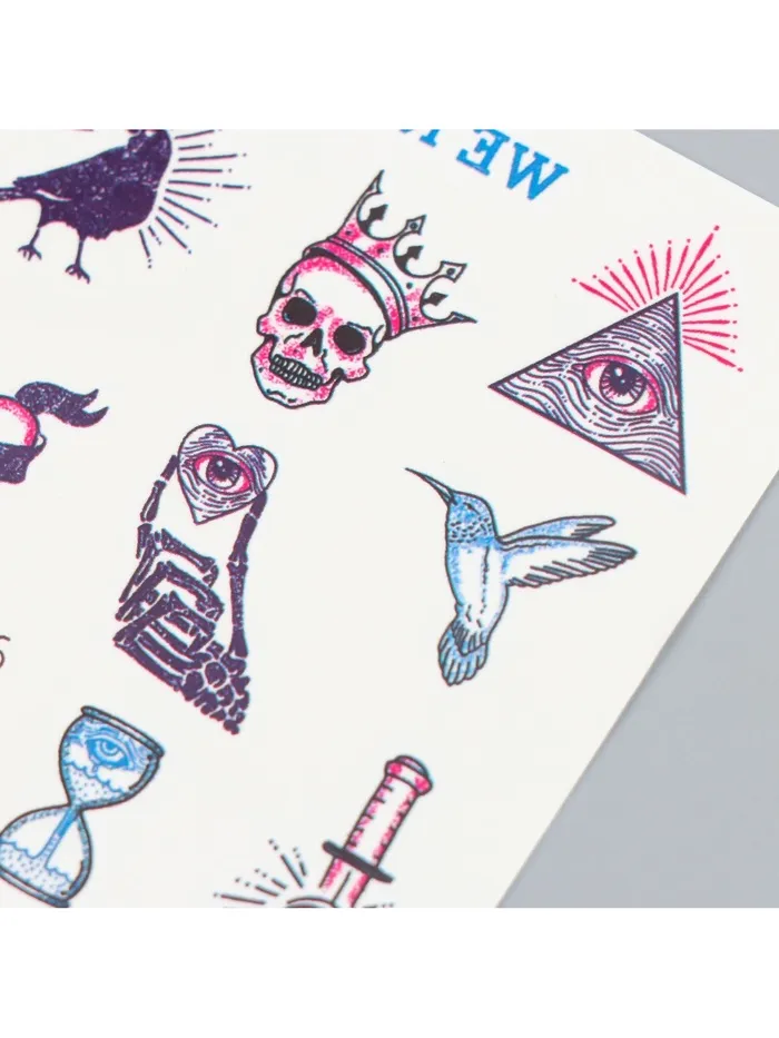 Татуировки легко наносятся на кожу благодаря удобной переводной технологии, не требуя специальных навыков. Они особенно актуальны для тематических мероприятий, таких как Хэллоуин, где их мистический и бунтарский дизайн станет настоящим хитом. При этом их можно использовать и в других случаях, чтобы добавить своему образу нотку креативности и самовыражения.