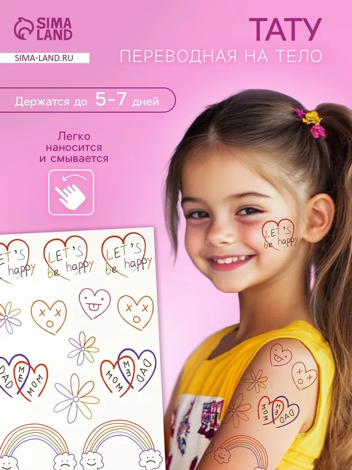 Переводные тату на тело цветные «Будем счастливыми», 10.5×15.2 см — Характеристики