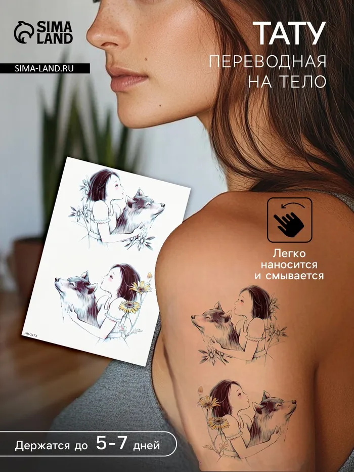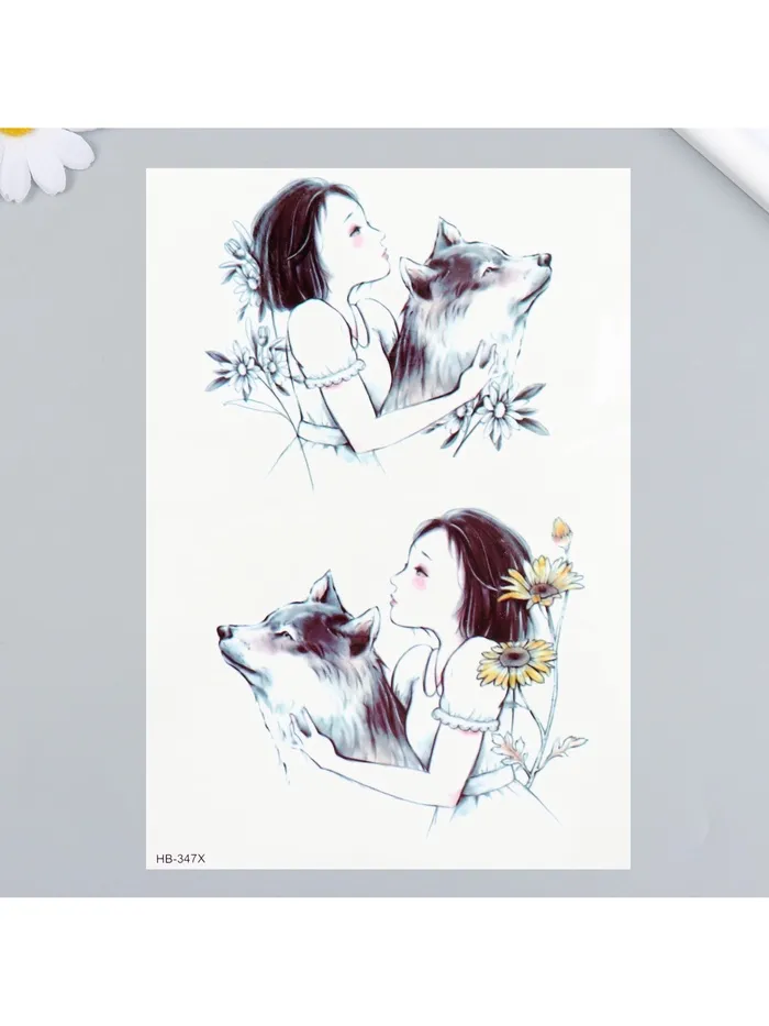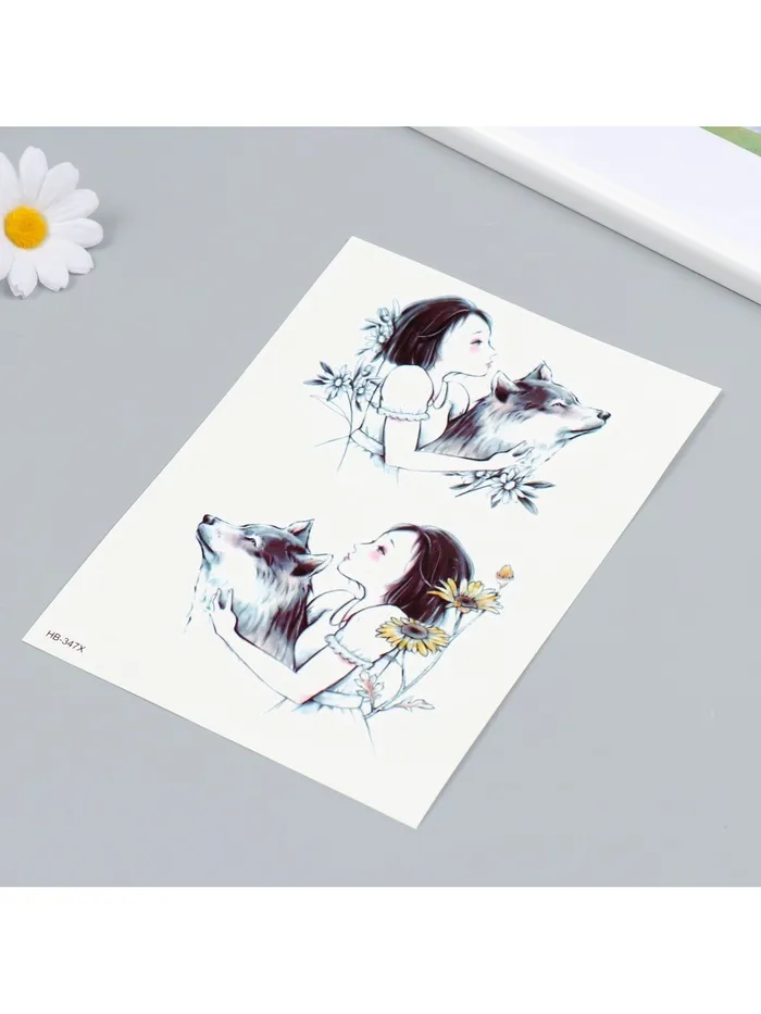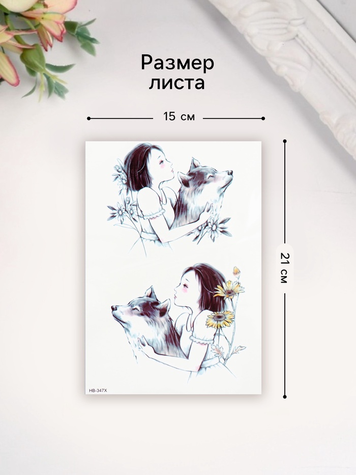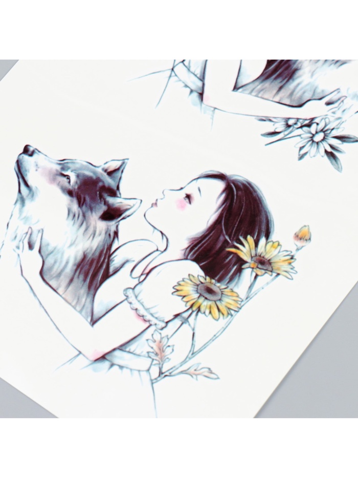 Переводные тату на тело цветные «Девочка с волком», 21×14.8 см — Характеристики