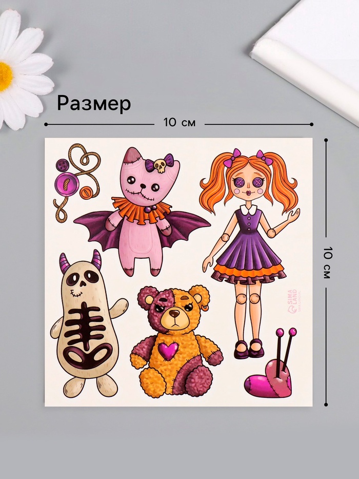 Переводные тату на тело цветные «Игрушки», 10×10 см — Характеристики