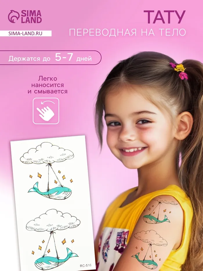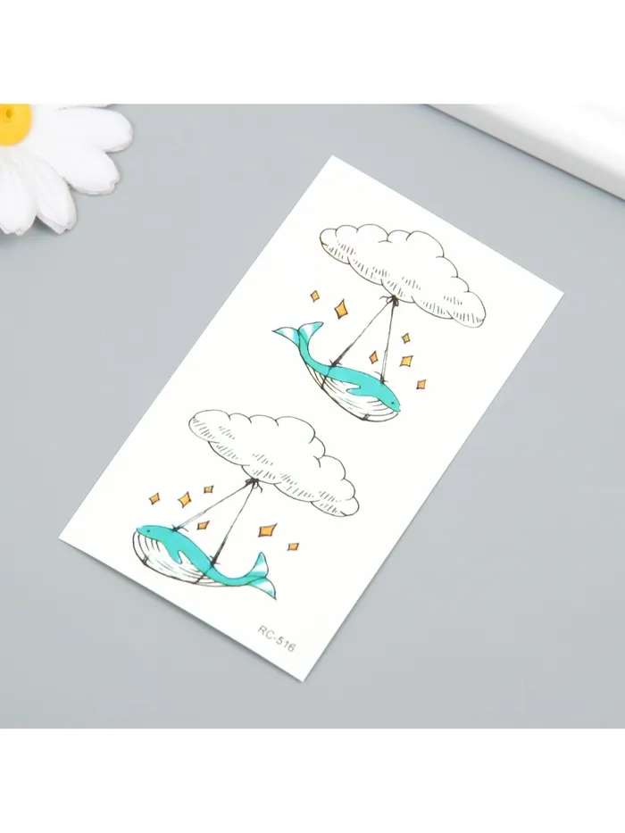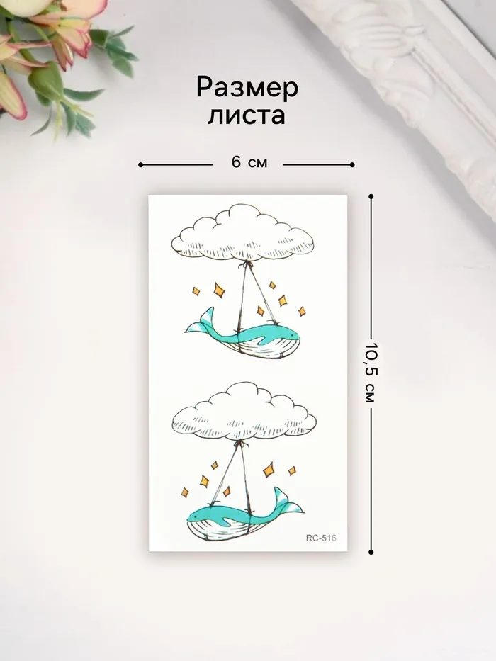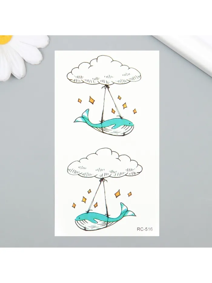 Переводные тату на тело цветные «Кит летит на облаке», 6×10.5 см — Характеристики