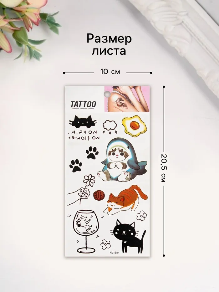 Переводные тату на тело цветные «Кошачье настроение», 10×20.5 см — Характеристики