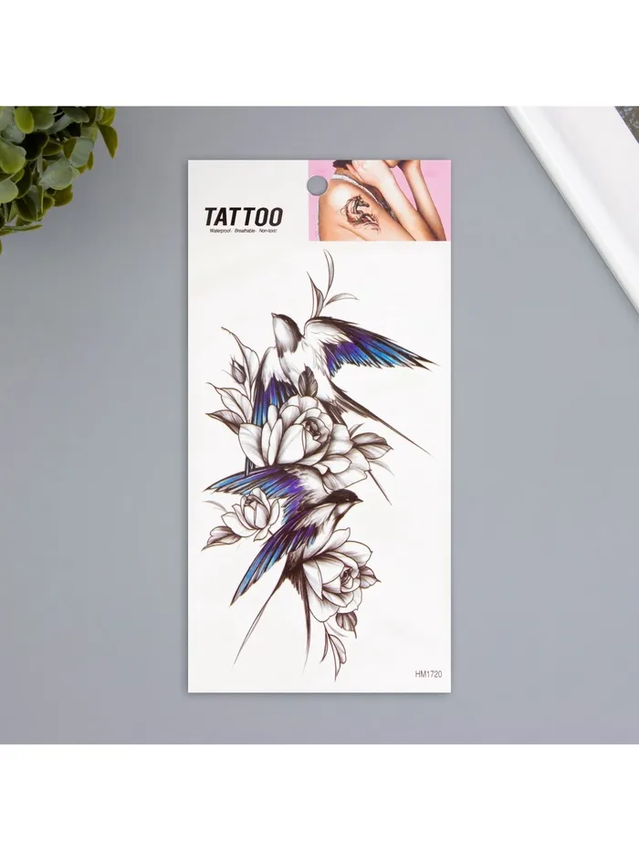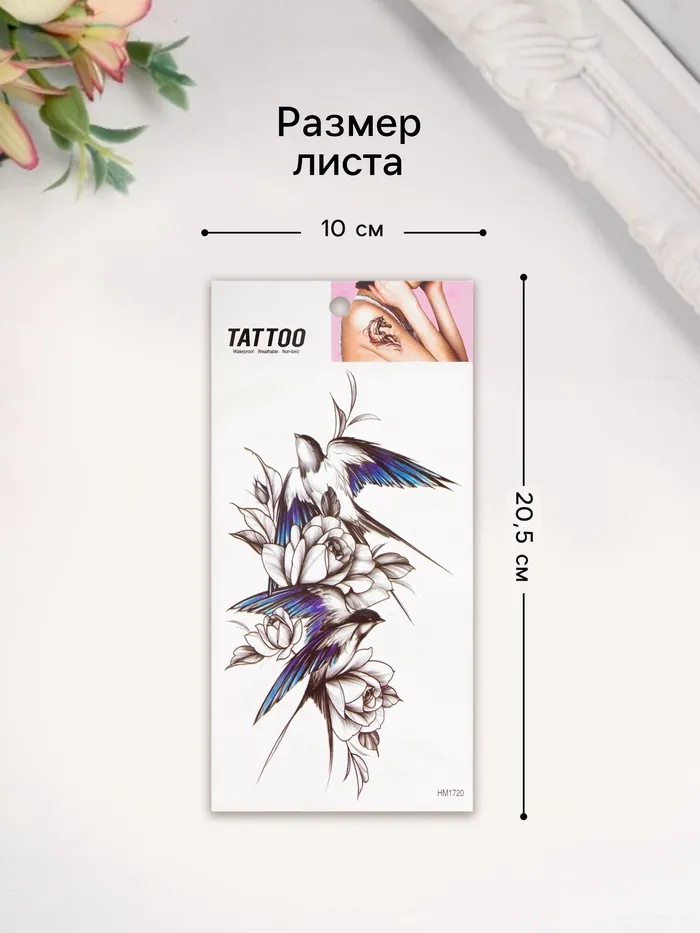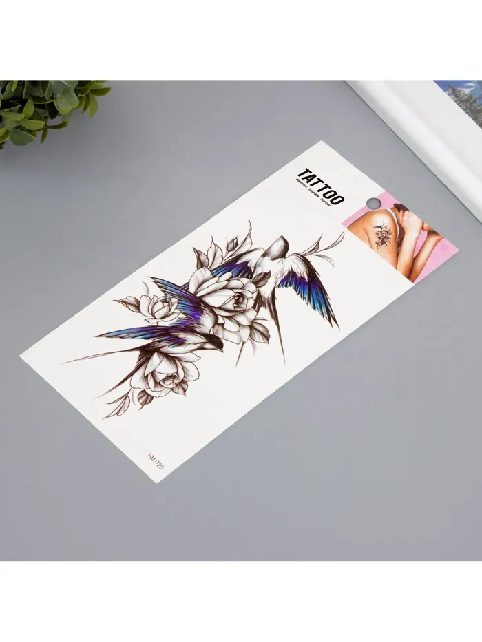 Переводные тату на тело цветные «Ласточка с синими перьями», 10×20.5 см — Характеристики