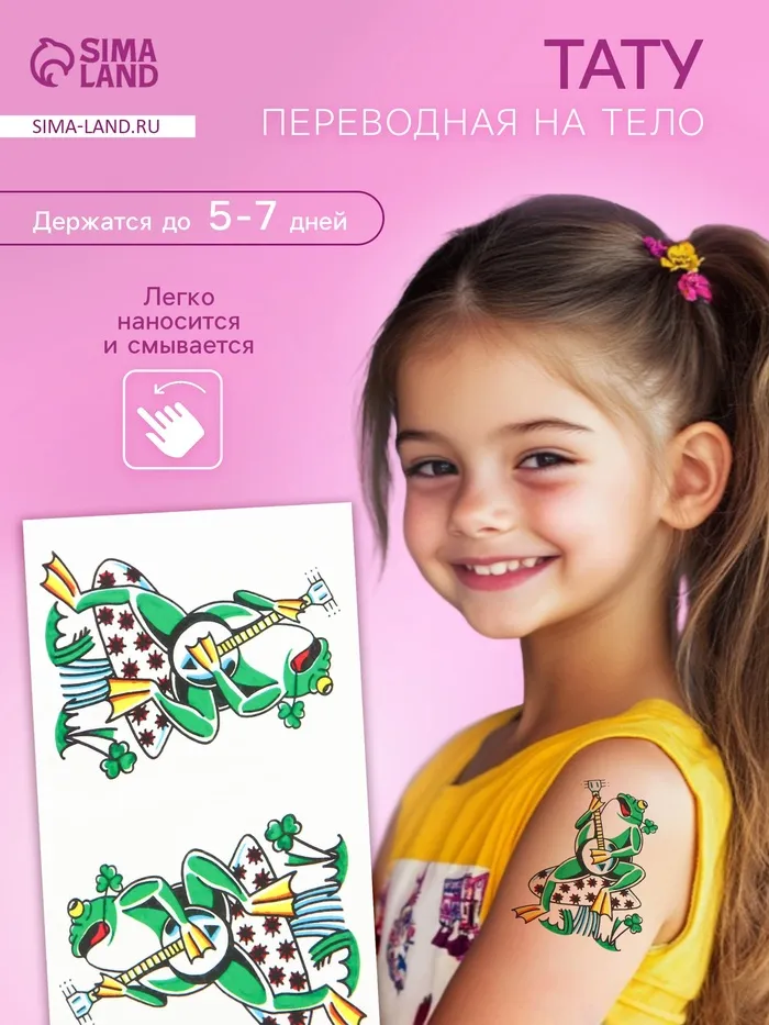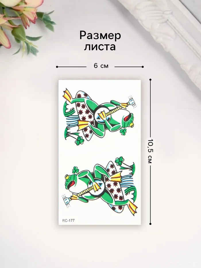 Переводные тату на тело цветные «Лягуха с балалайкой», 6×10.5 см — Характеристики