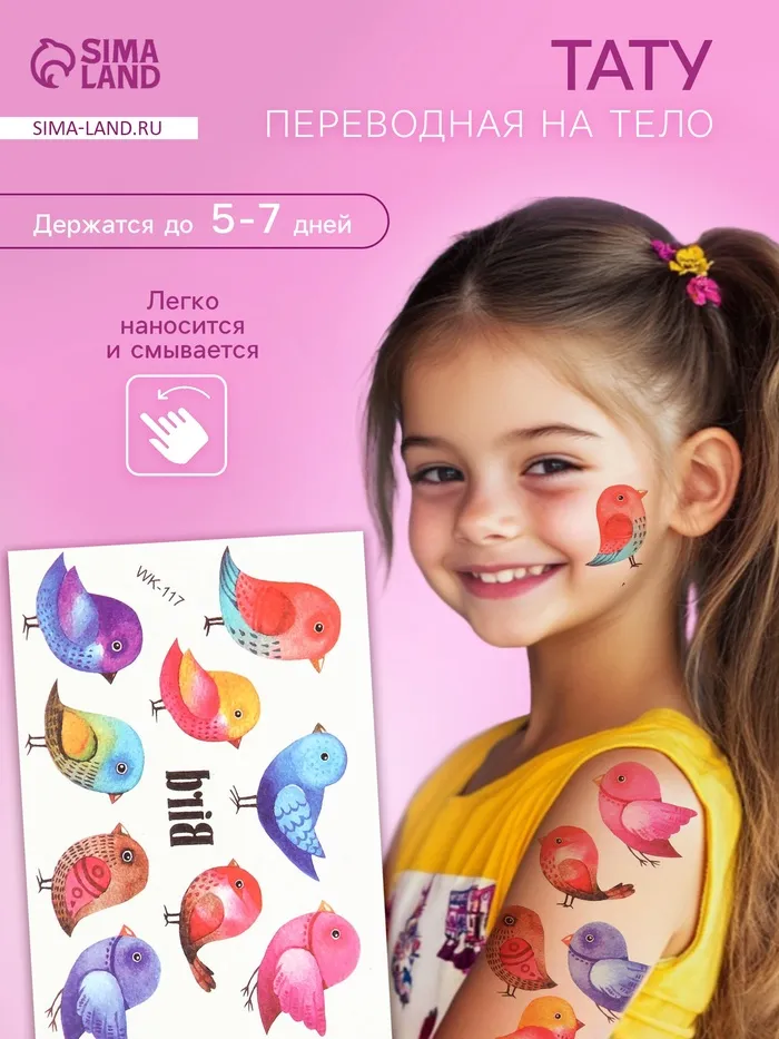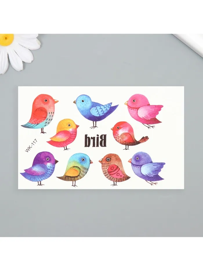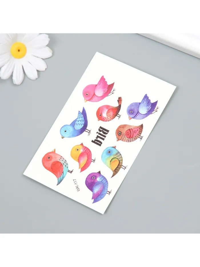 Переводные тату на тело цветные «Маленькие воробышки», 7.5×11 см — Характеристики