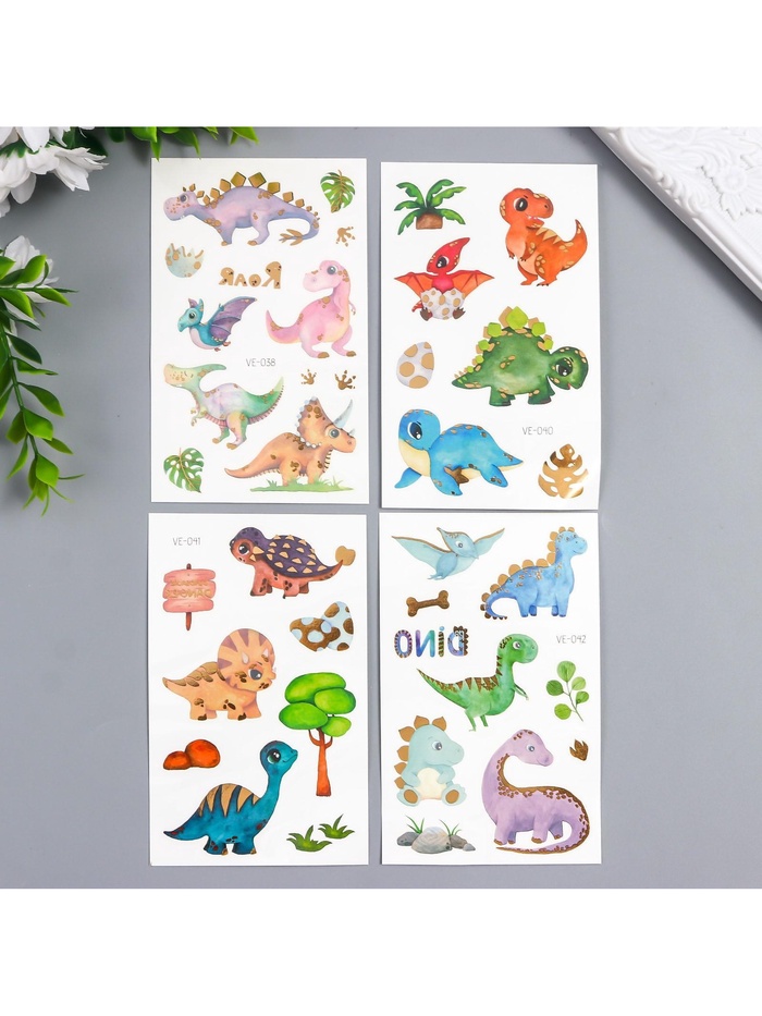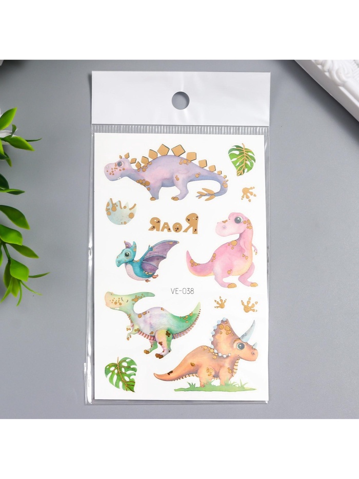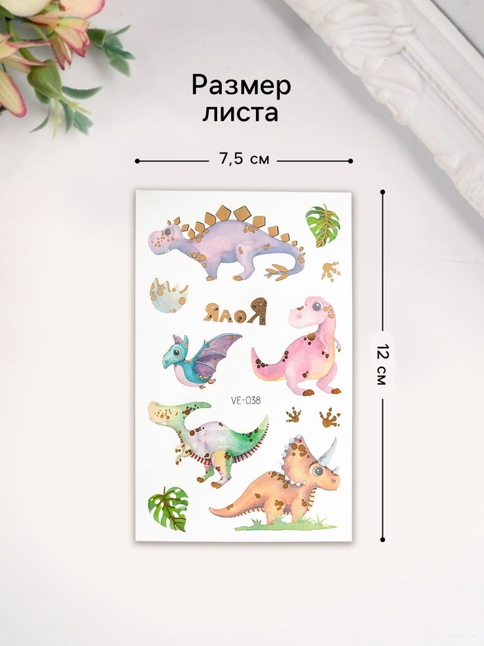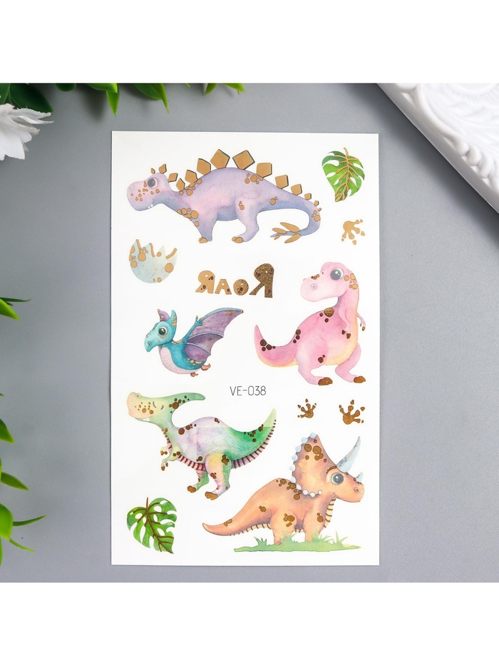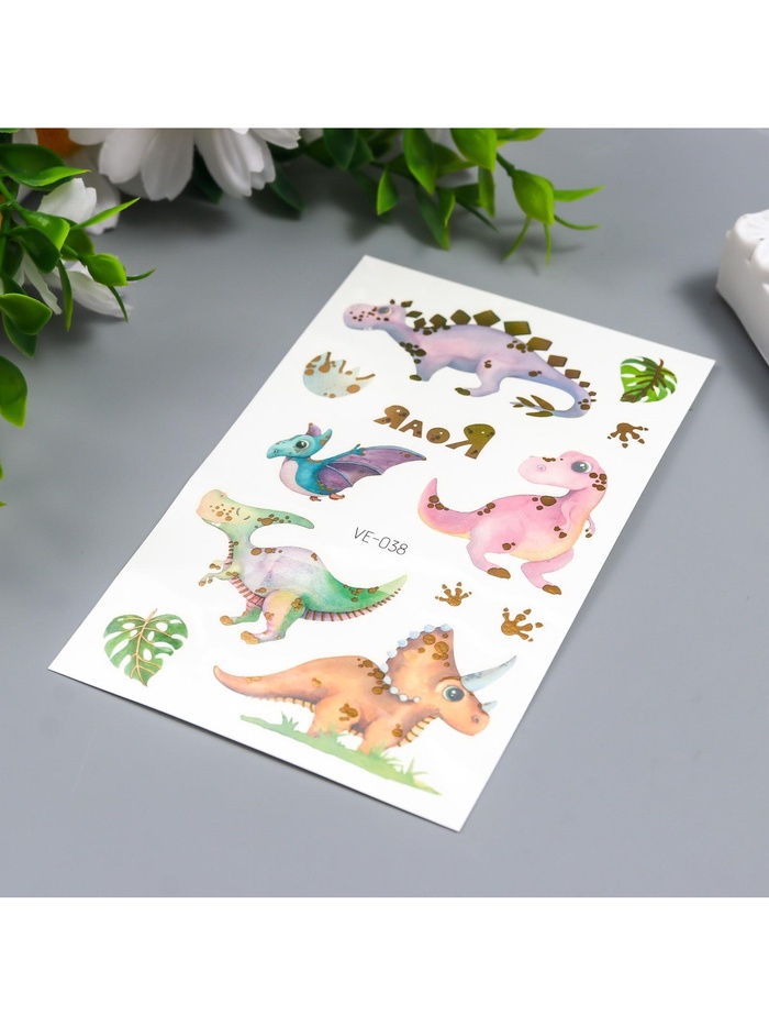 Переводные тату на тело цветные «Малыши динозаврики», с золотом, 12×7.5 см, МИКС — Характеристики