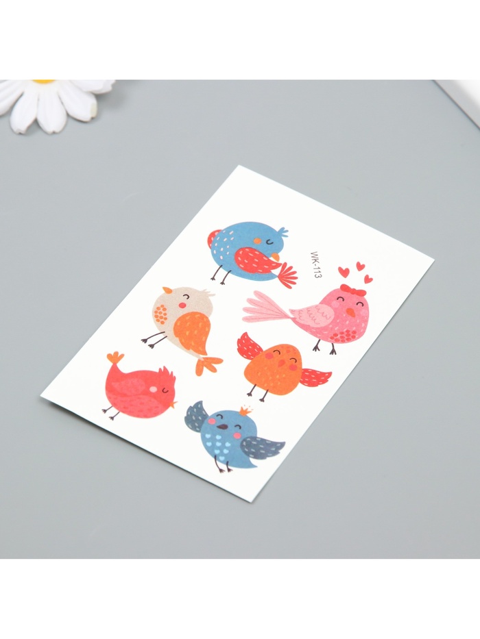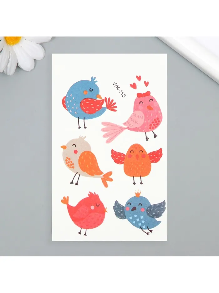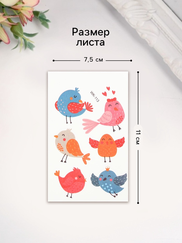 Переводные тату на тело цветные «Птенчики. Романтики», 7.5×11 см — Характеристики
