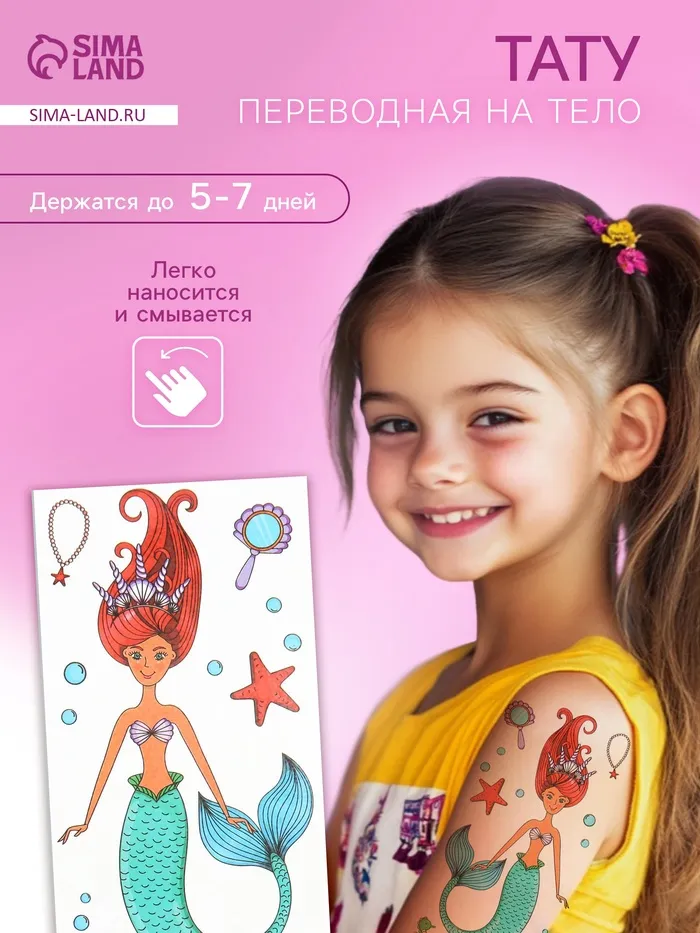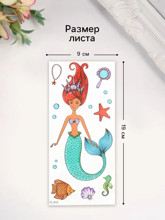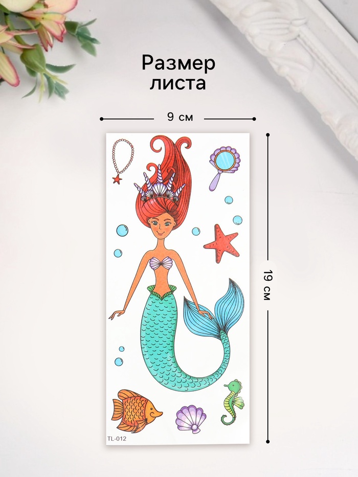 Переводные тату на тело цветные «Русалка в тиаре», 9×19 см — Характеристики