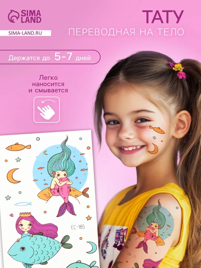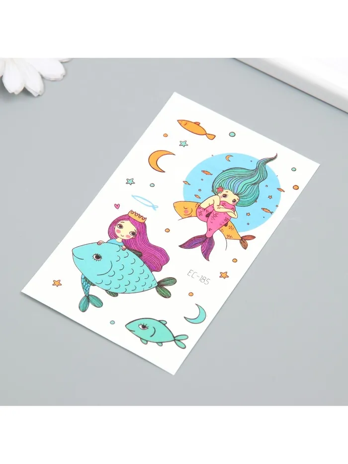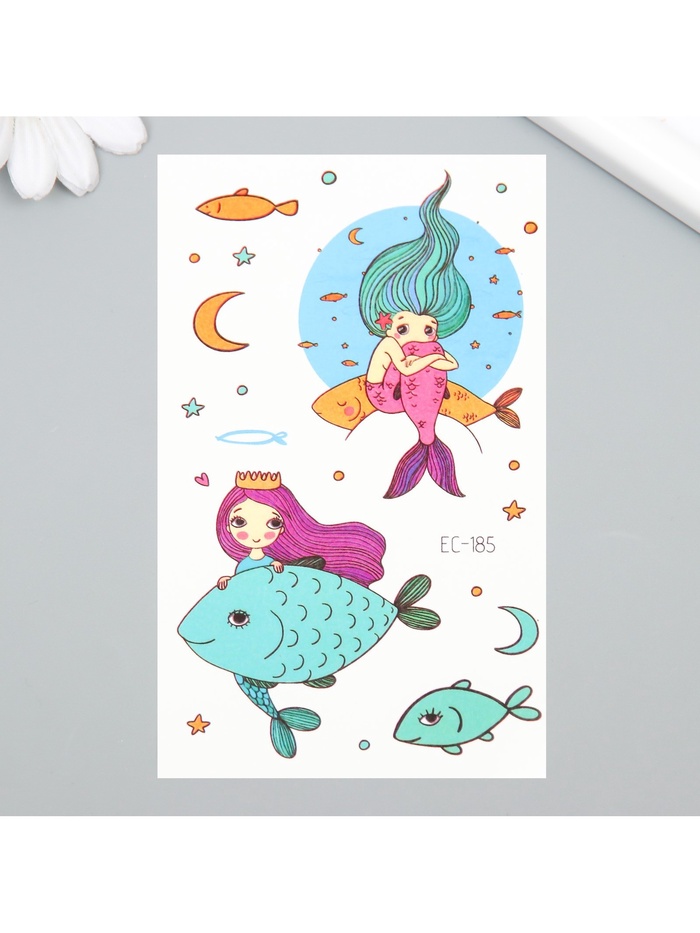 Переводные тату на тело цветные «Русалочки и рыбки», 7.5×12 см — Характеристики