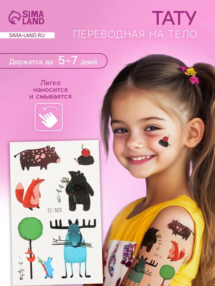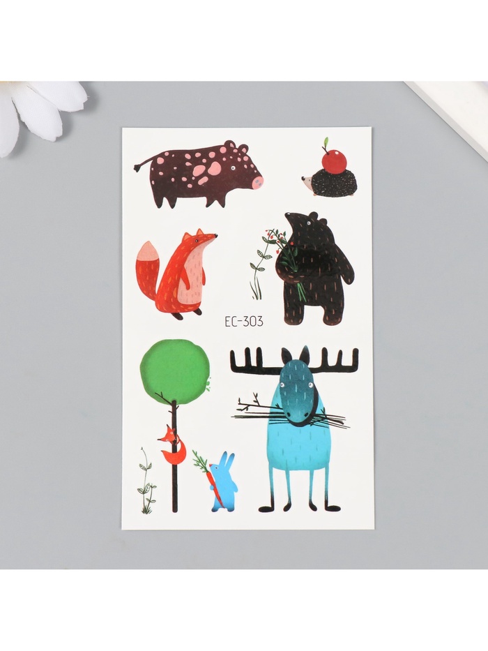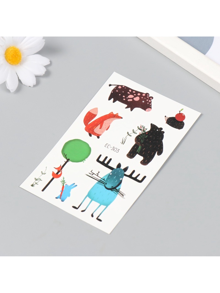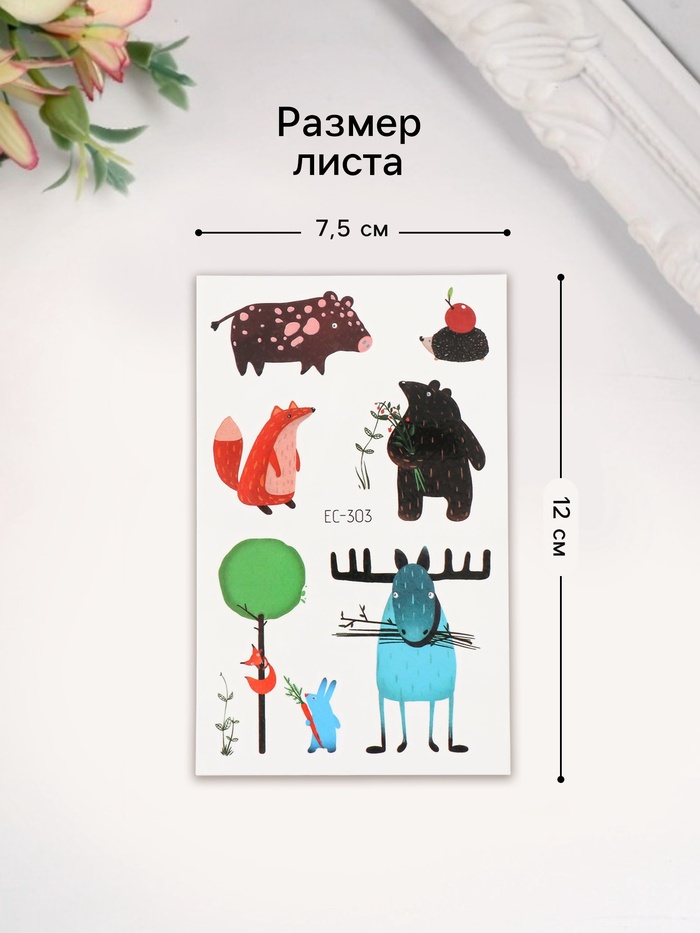 Переводные тату на тело цветные «Смешные звери», 7.5×12 см — Характеристики