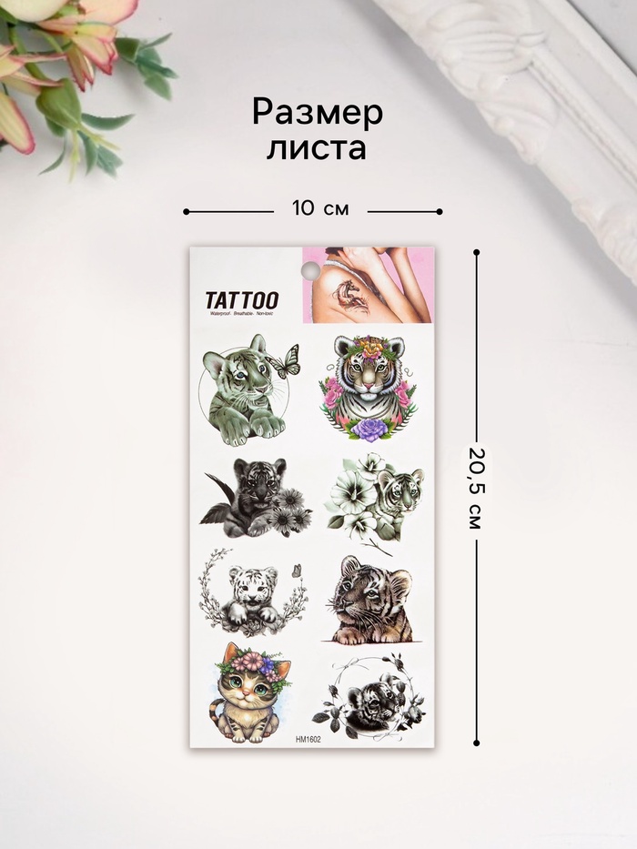 Переводные тату на тело цветные «Тигрёнок разный», 10×20.5 см — Характеристики