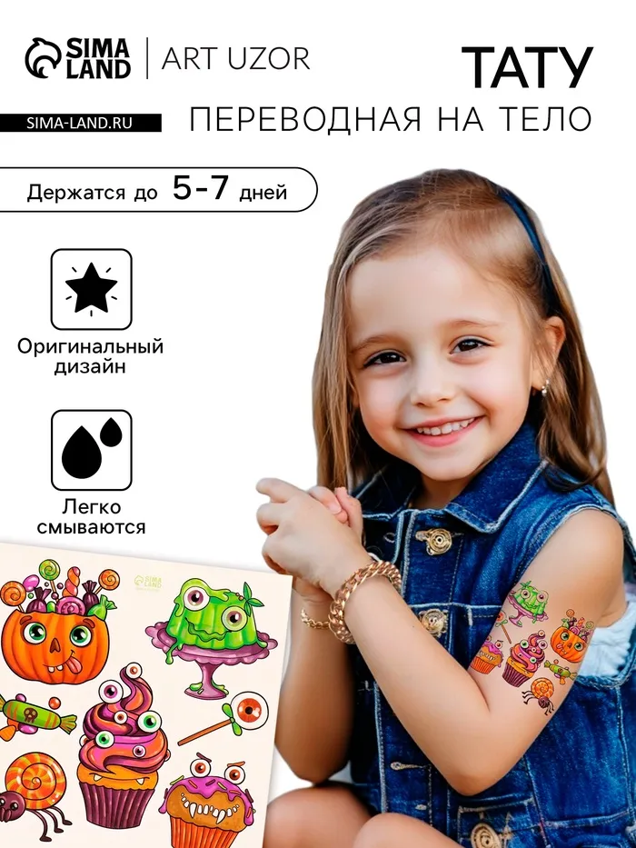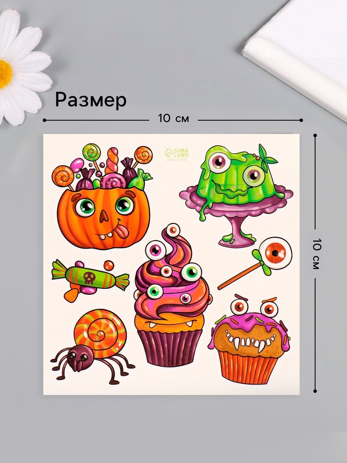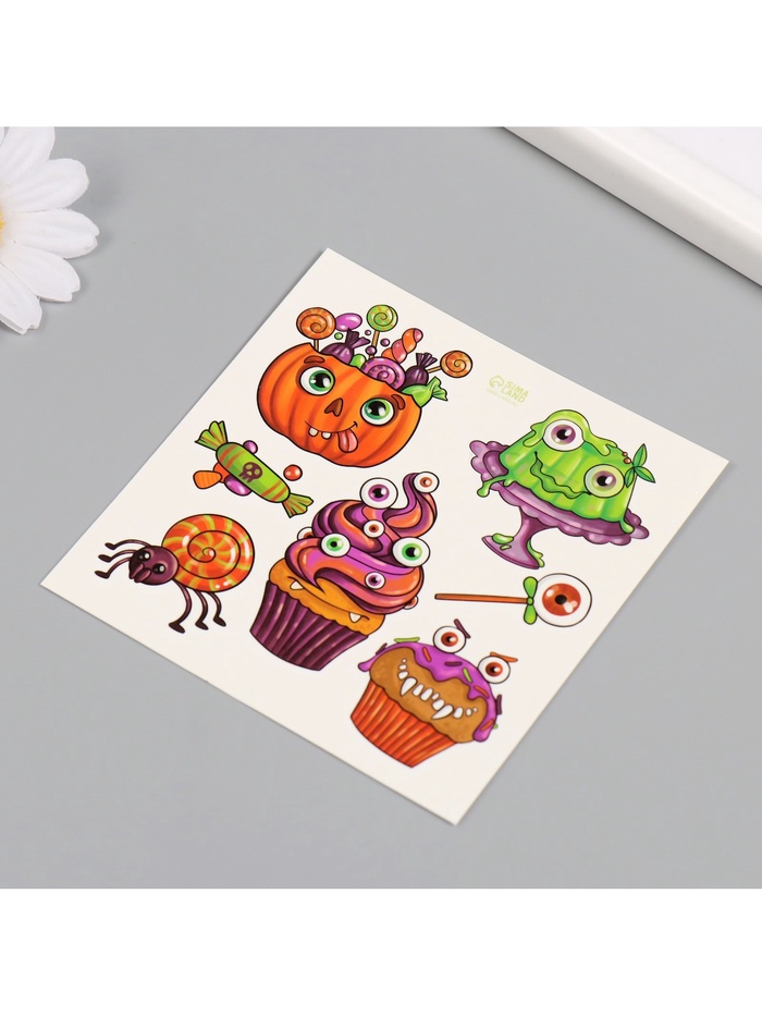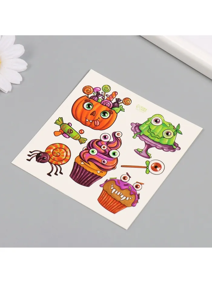 Переводные тату на тело цветные «Ужасные сладости», 10×10 см — Характеристики