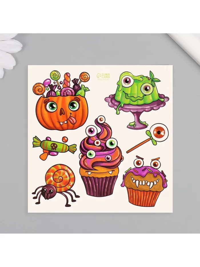 Погрузитесь в атмосферу Хэллоуина с уникальными татуировками. Цветные тату «Ужасные сладости» — отличный способ добавить оригинальности и праздничного настроения в ваш образ. Каждая наклейка создана с тематикой Хэллоуина и предлагает яркие и запоминающиеся образы.