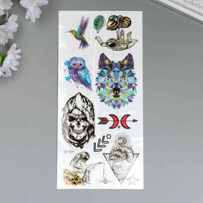 Переводные тату на тело «Волк и череп», 19×9 см — Характеристики