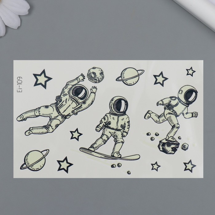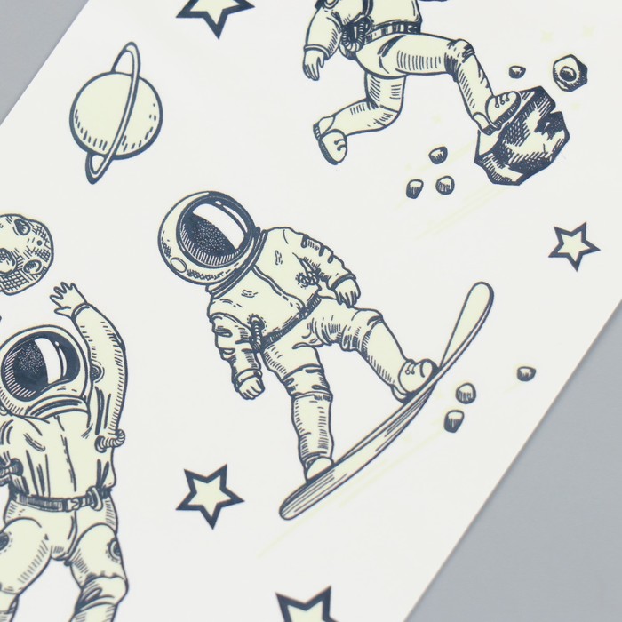 Переводные тату светящиеся «Космические приключения», временные татуировки светящиеся, 12×7.5 см — Характеристики